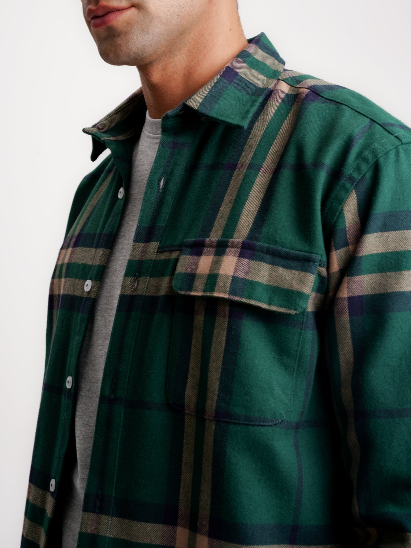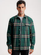 Sobrecamisa Regular Fit Flanela Verde Manga Comprida Com Bolso Com Quadrados