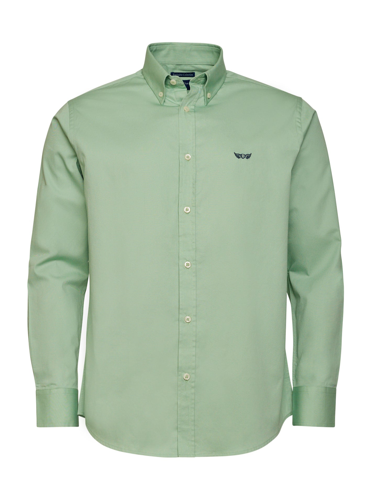 Camisa Regular Fit Twill Verde Algodão Lisa Com logo
