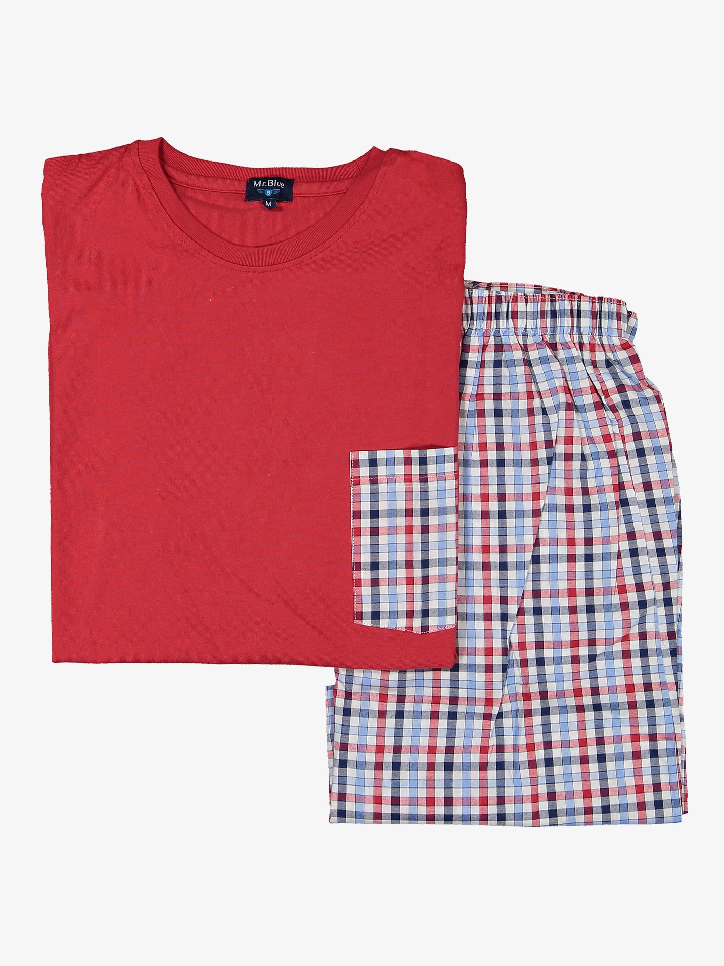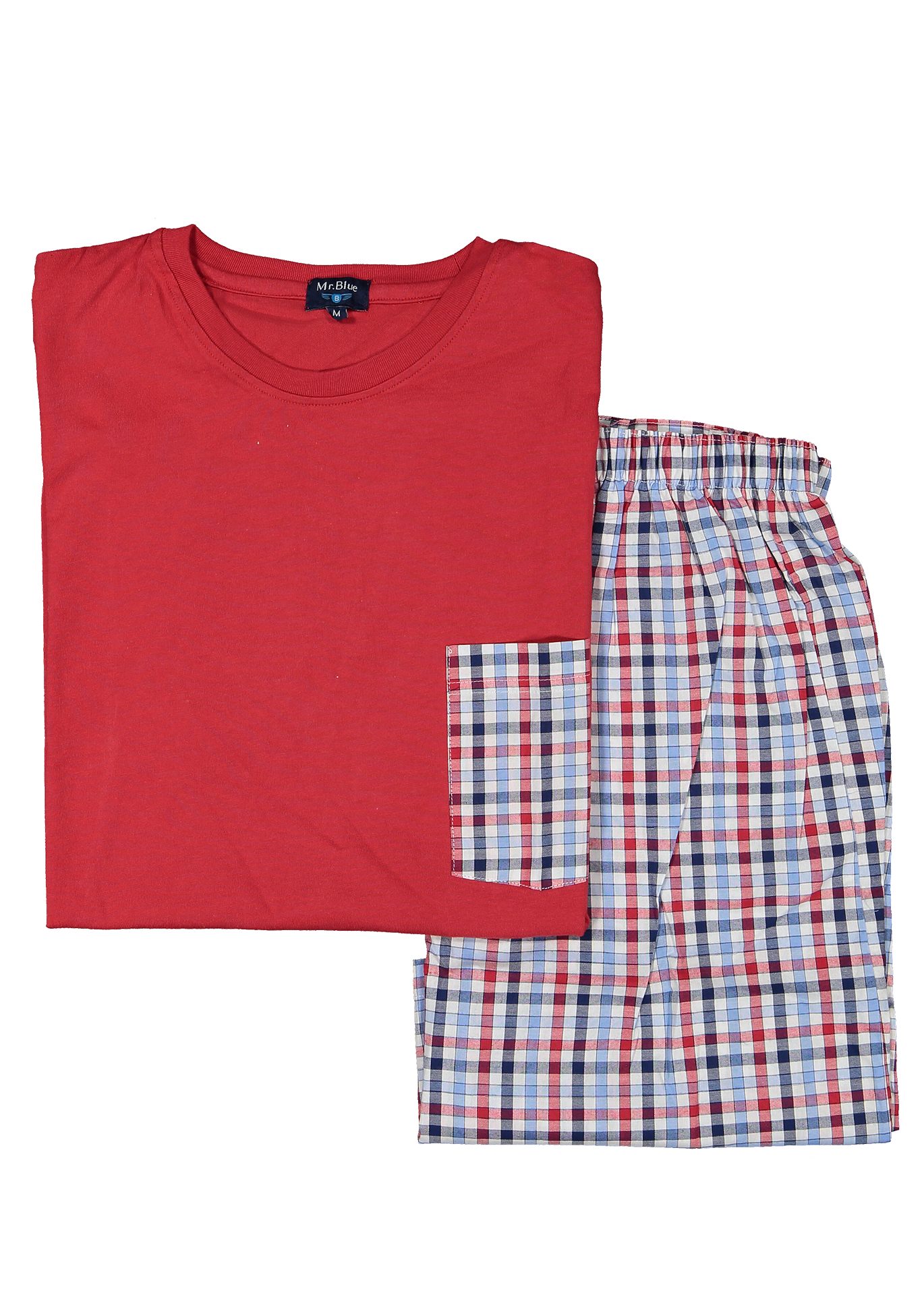 Pijamas Desportivo Calçao e T-shirt quadrados grandes azul escuro e vermelho