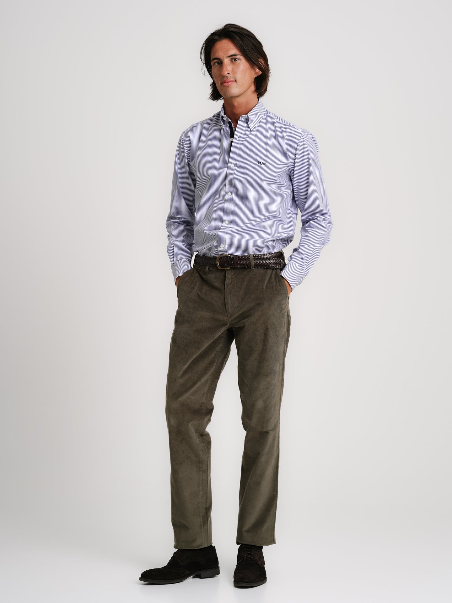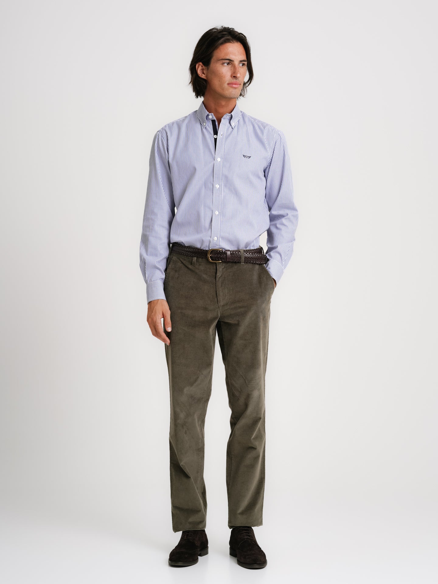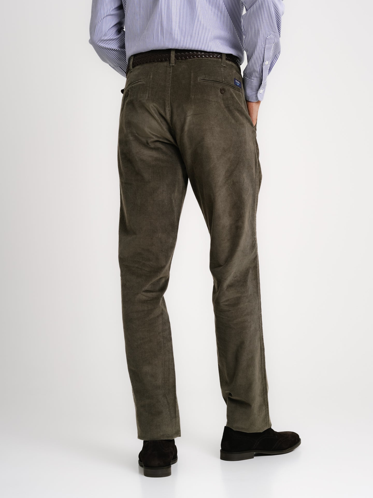 Calças Bombazine Regular Fit Verde Algodão Liso