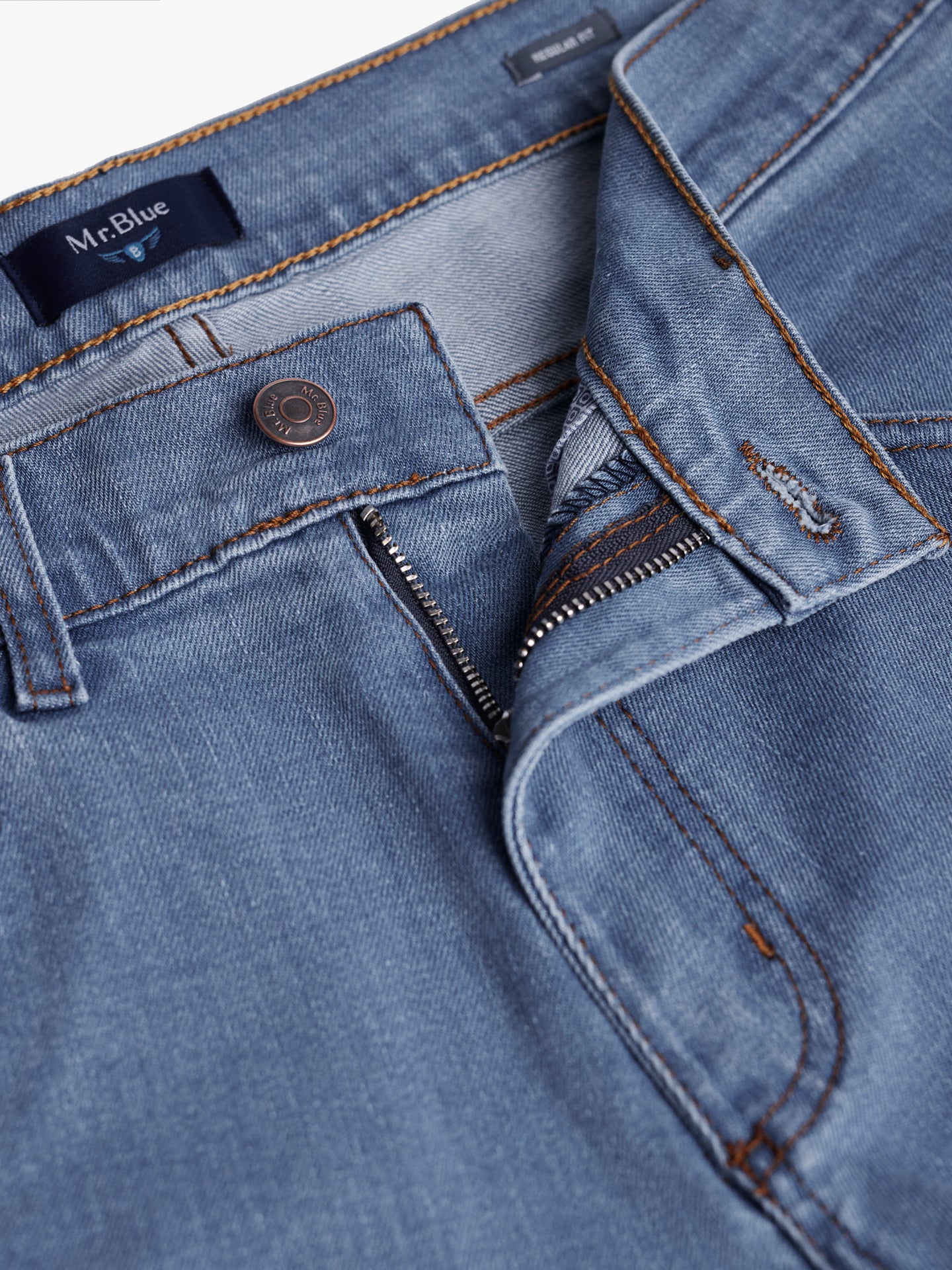 Calças Jeans Regular Fit Azuis De Algodão Lisas