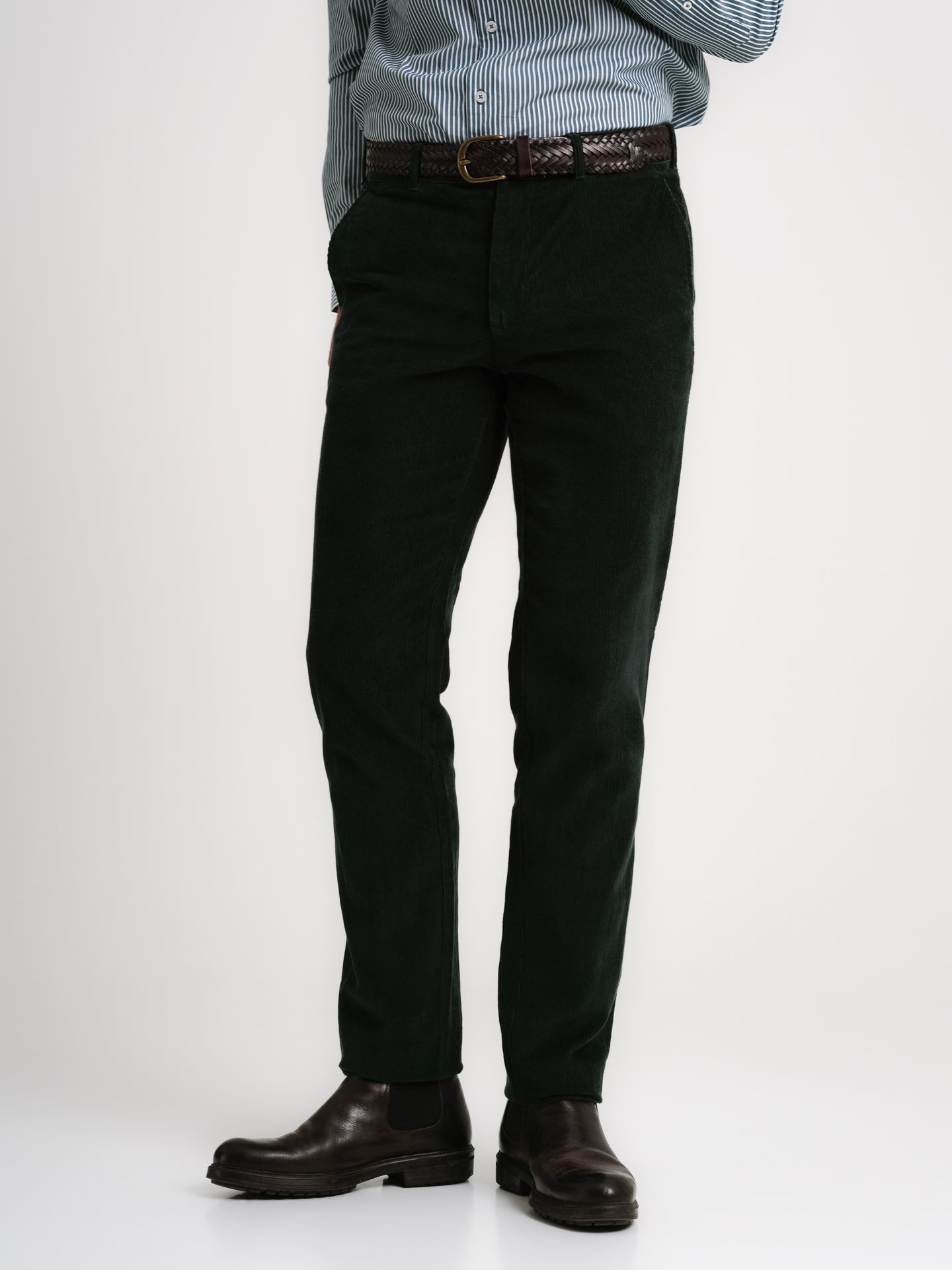 Calças em bombazina riscas finas verde escuro