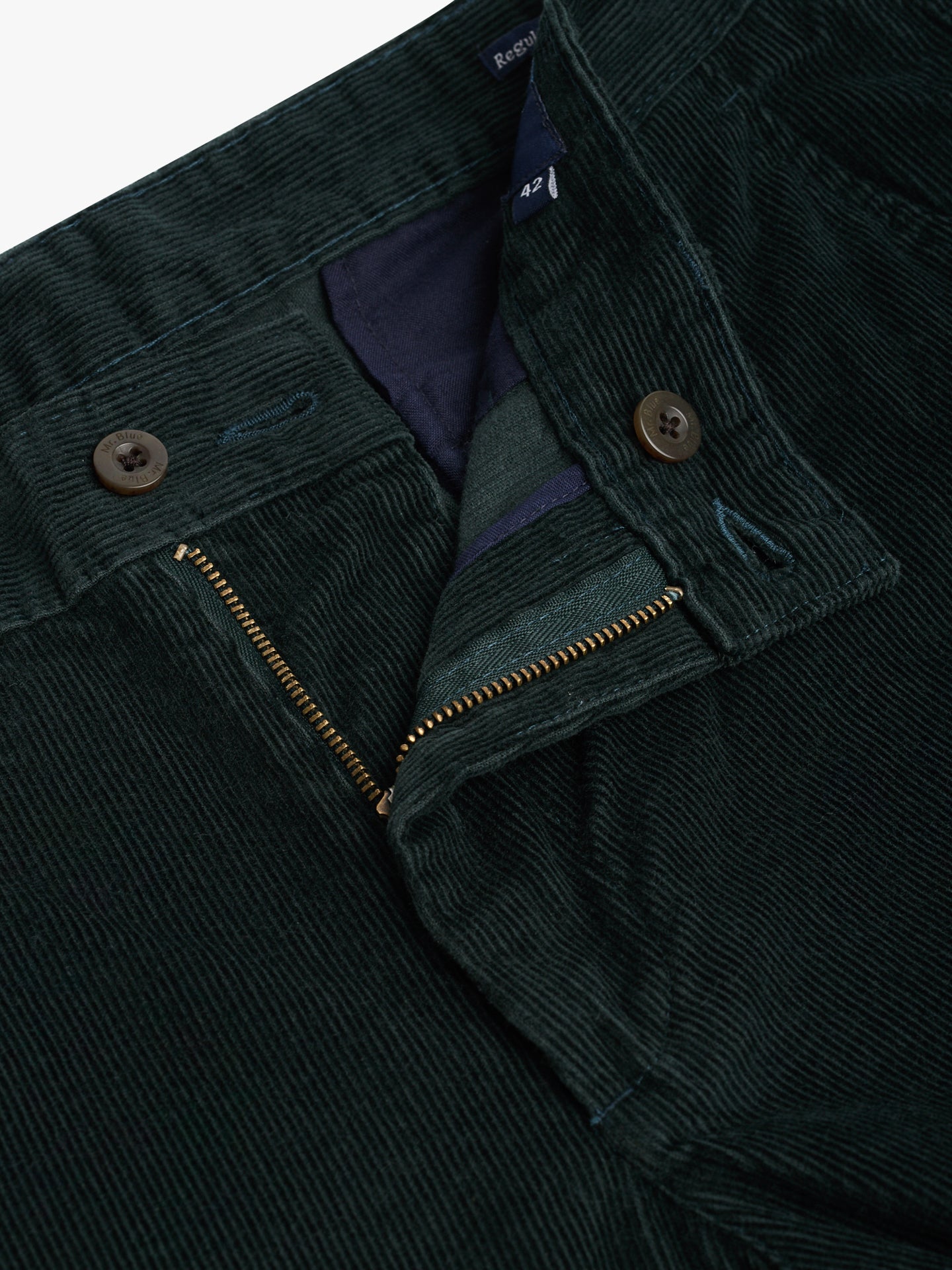Calças regular fit em bombazina verde escuro