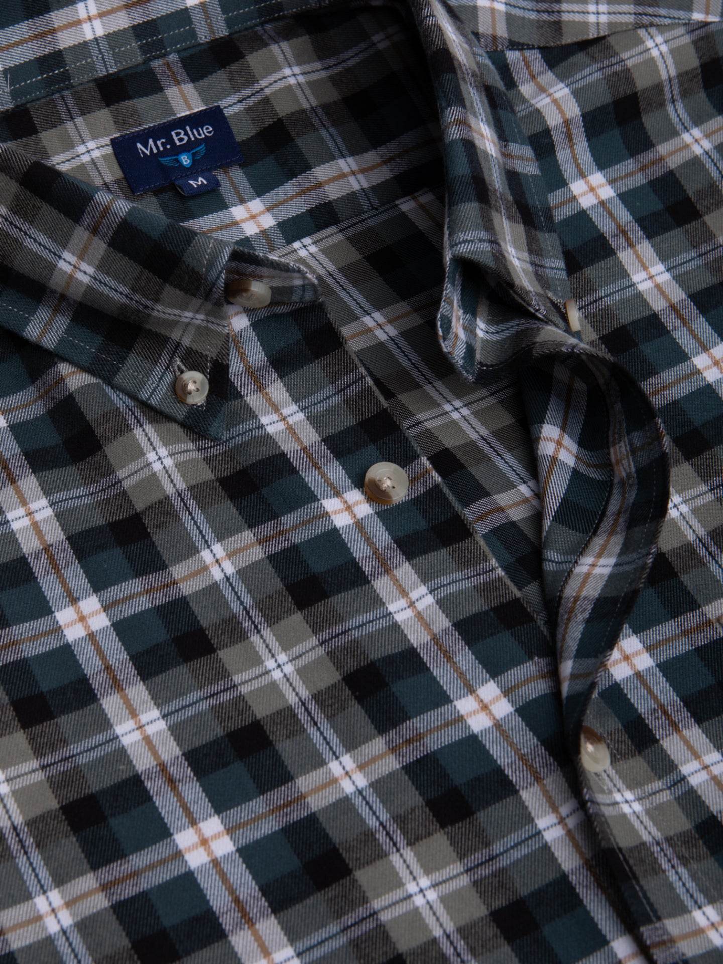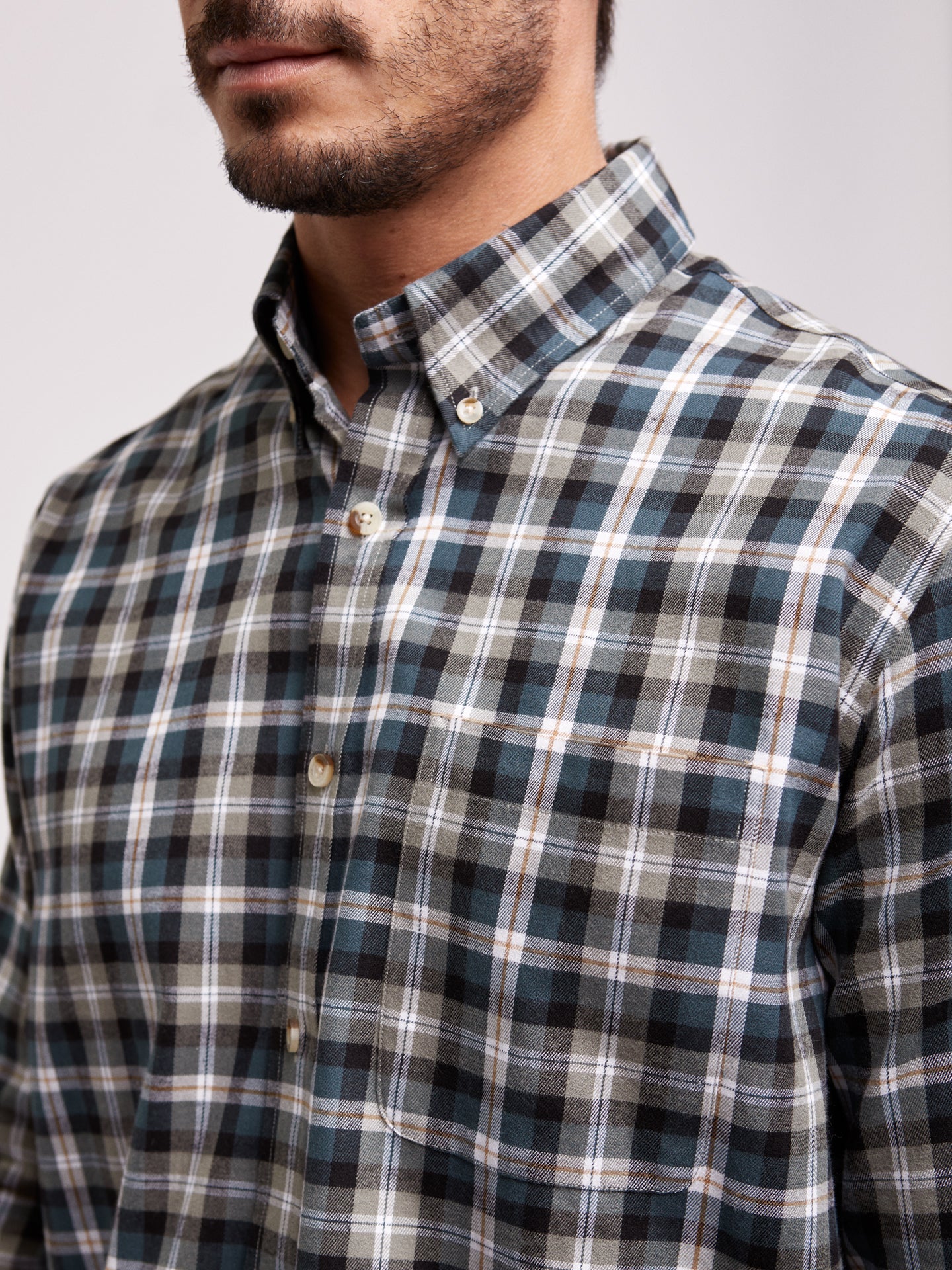 Camisa Regular Fit Verde Manga CompridaManga Comprida Quadrados Com Bolso