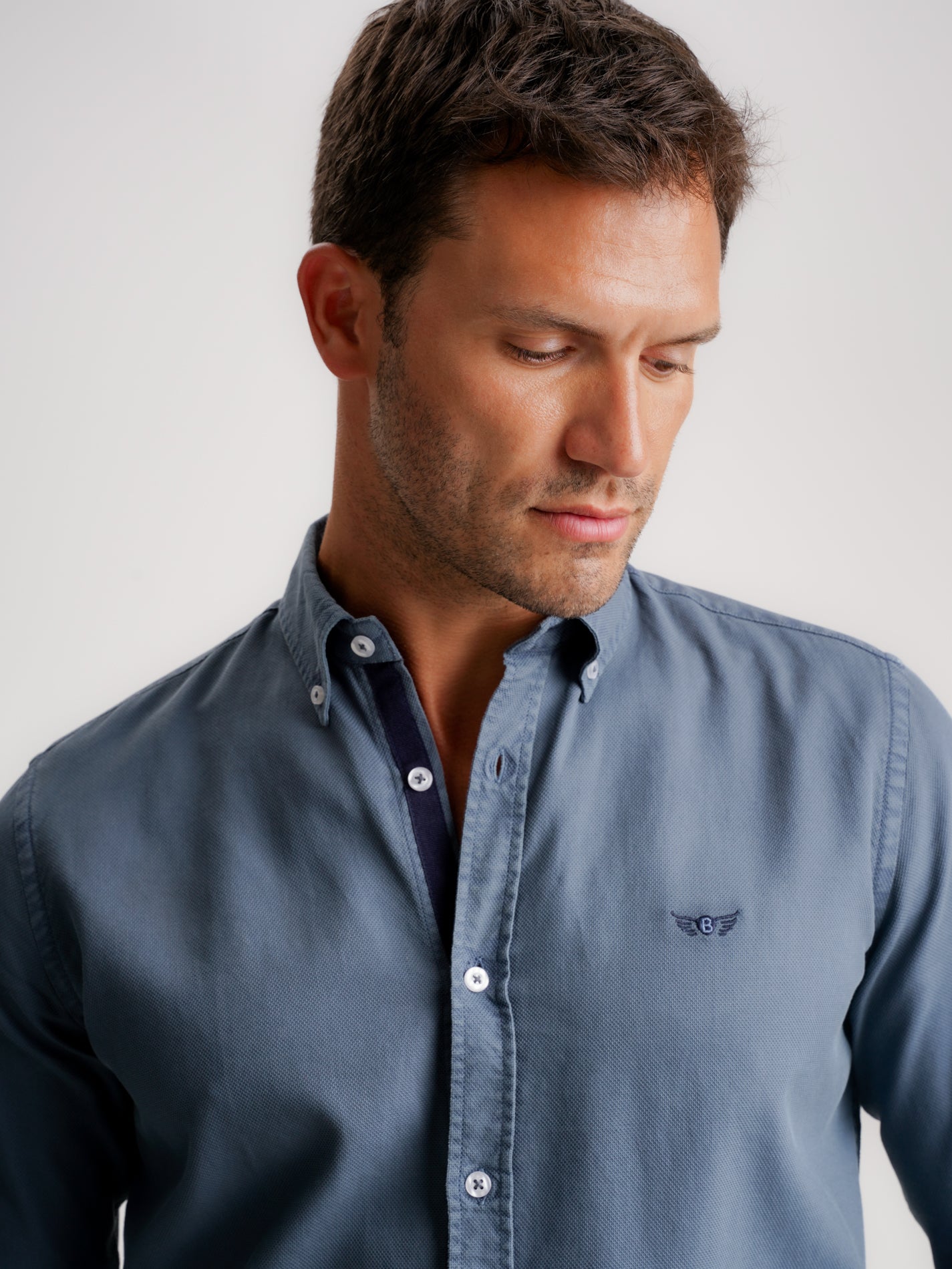 Camisa Regular Fit Estruturada Azul