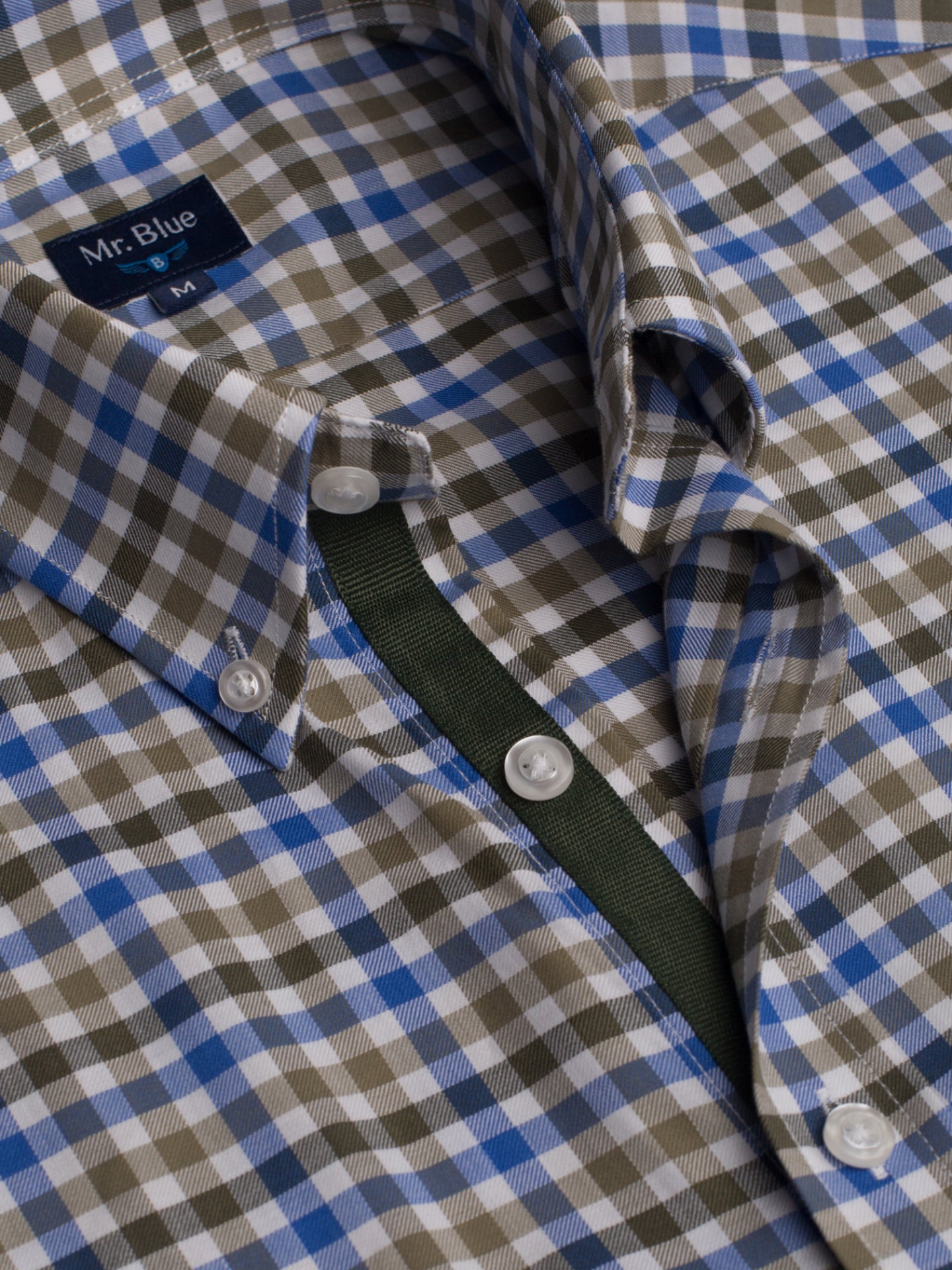 Camisa algodão aos quadrados branco e verde com logo bordado e detalhes