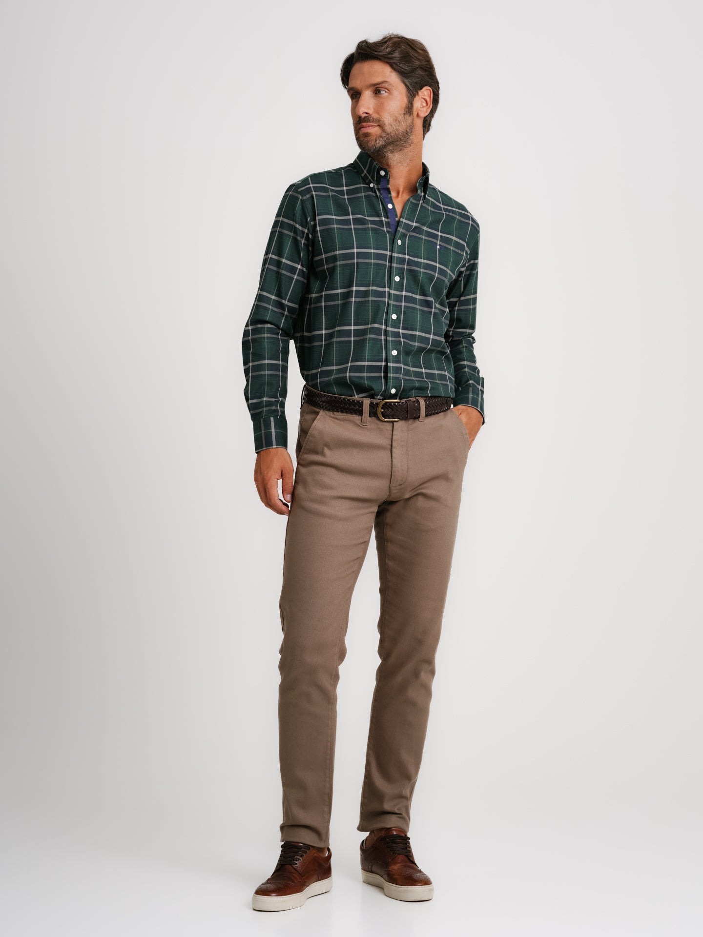 Camisa Regular Fit Twill Verde Algodão Quadrados Com logo