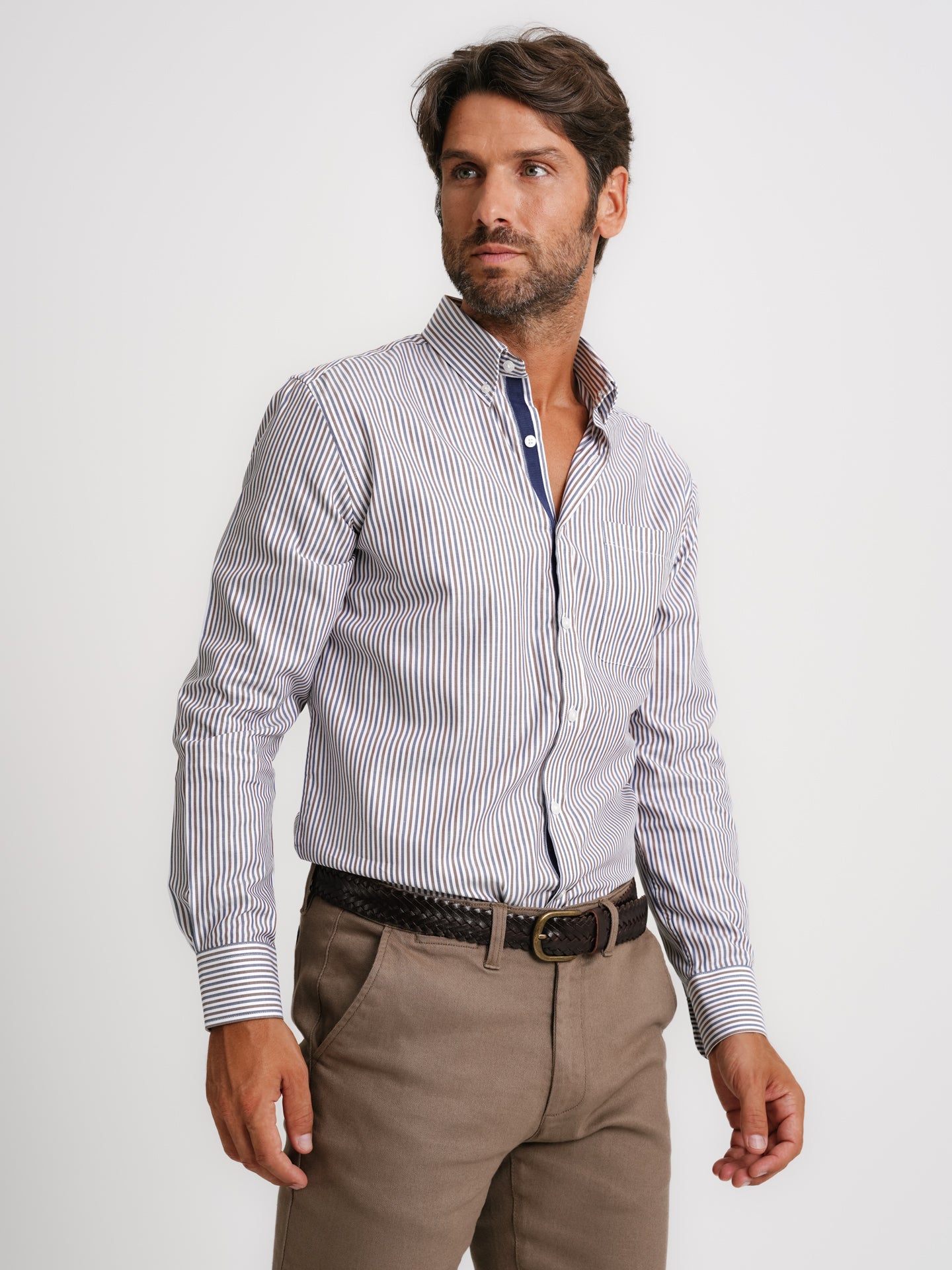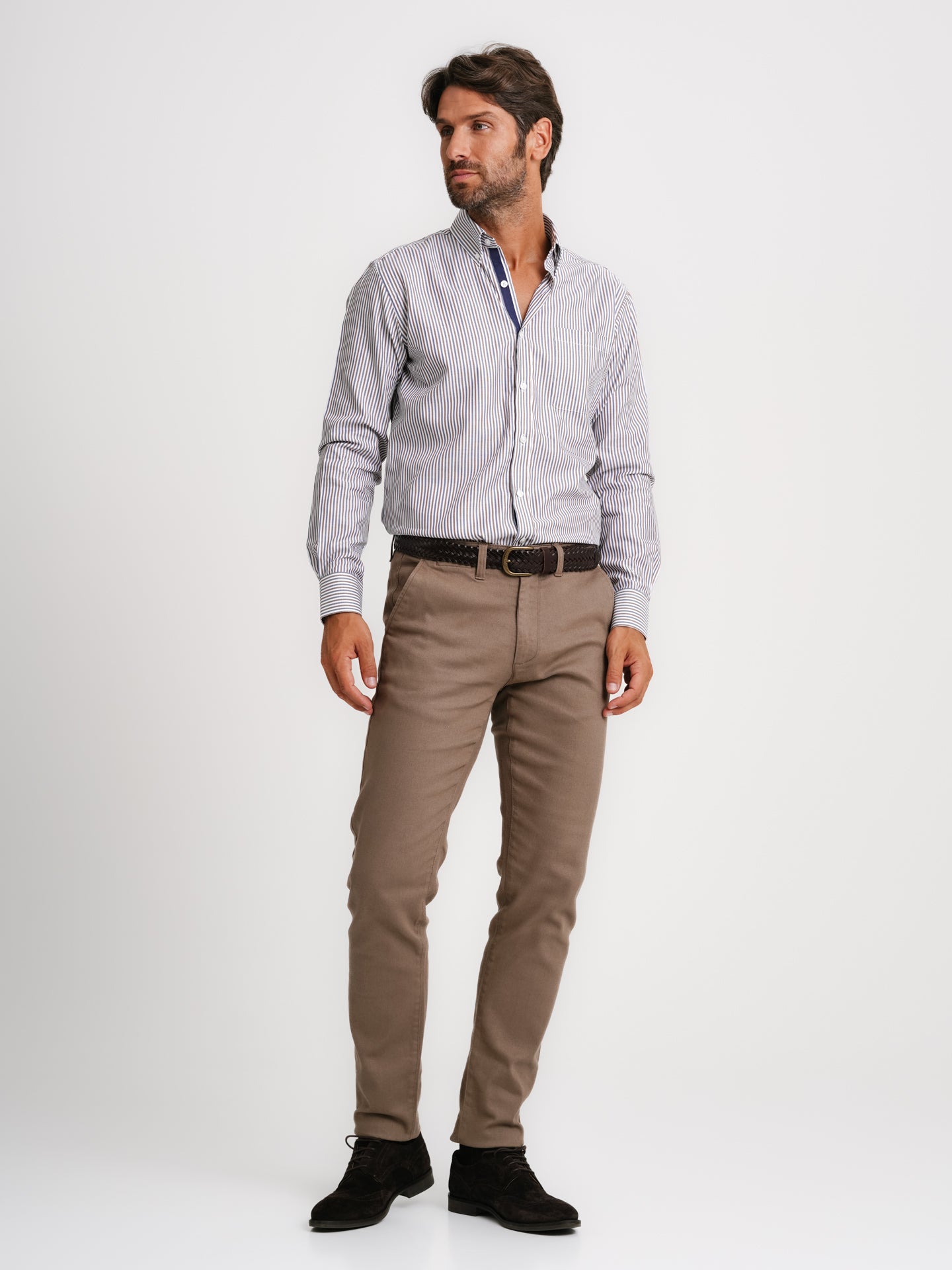 Camisa Regular Fit Popeline Castanha
