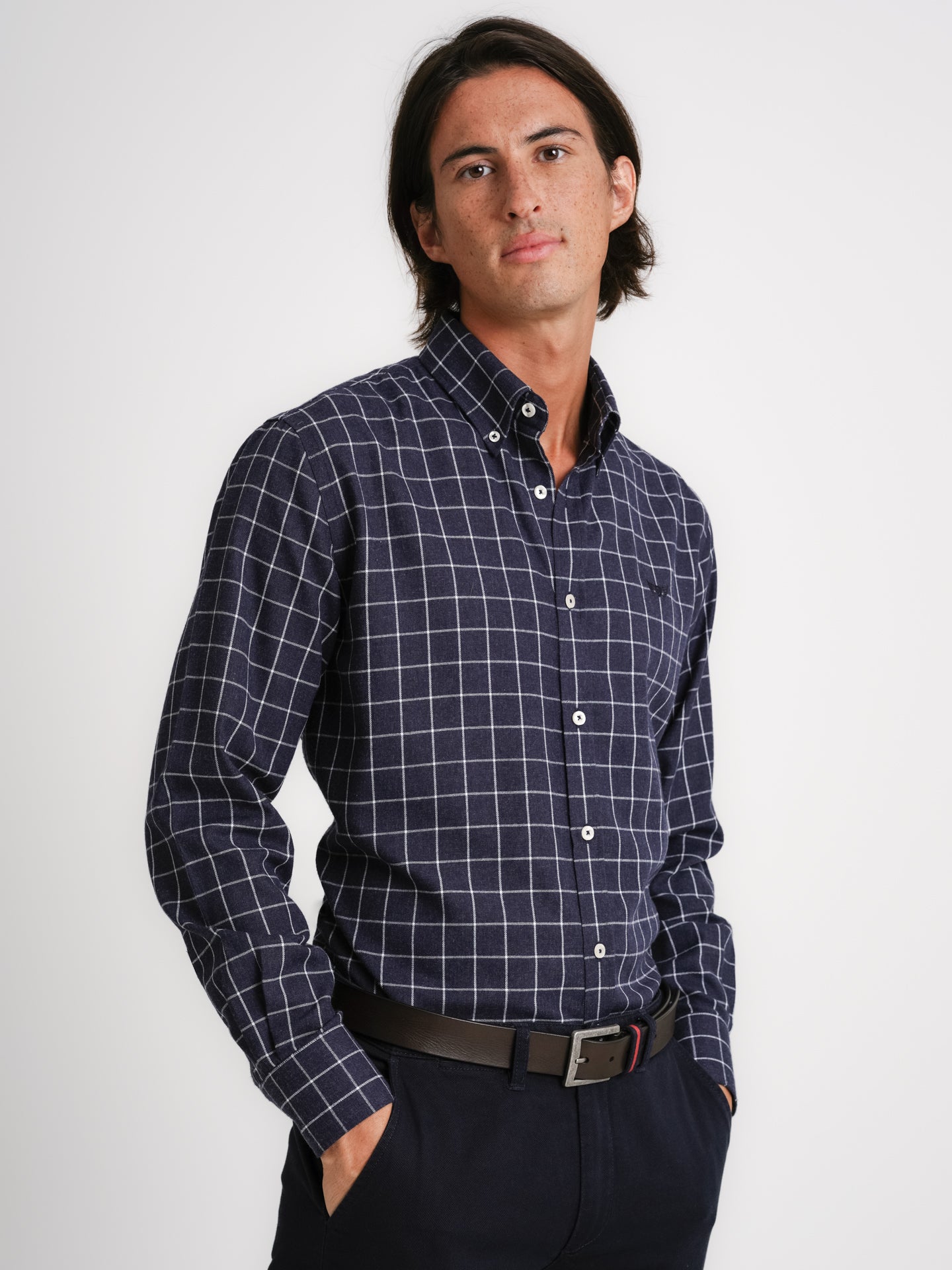 Camisa Tailored fit Flanela Cinzento