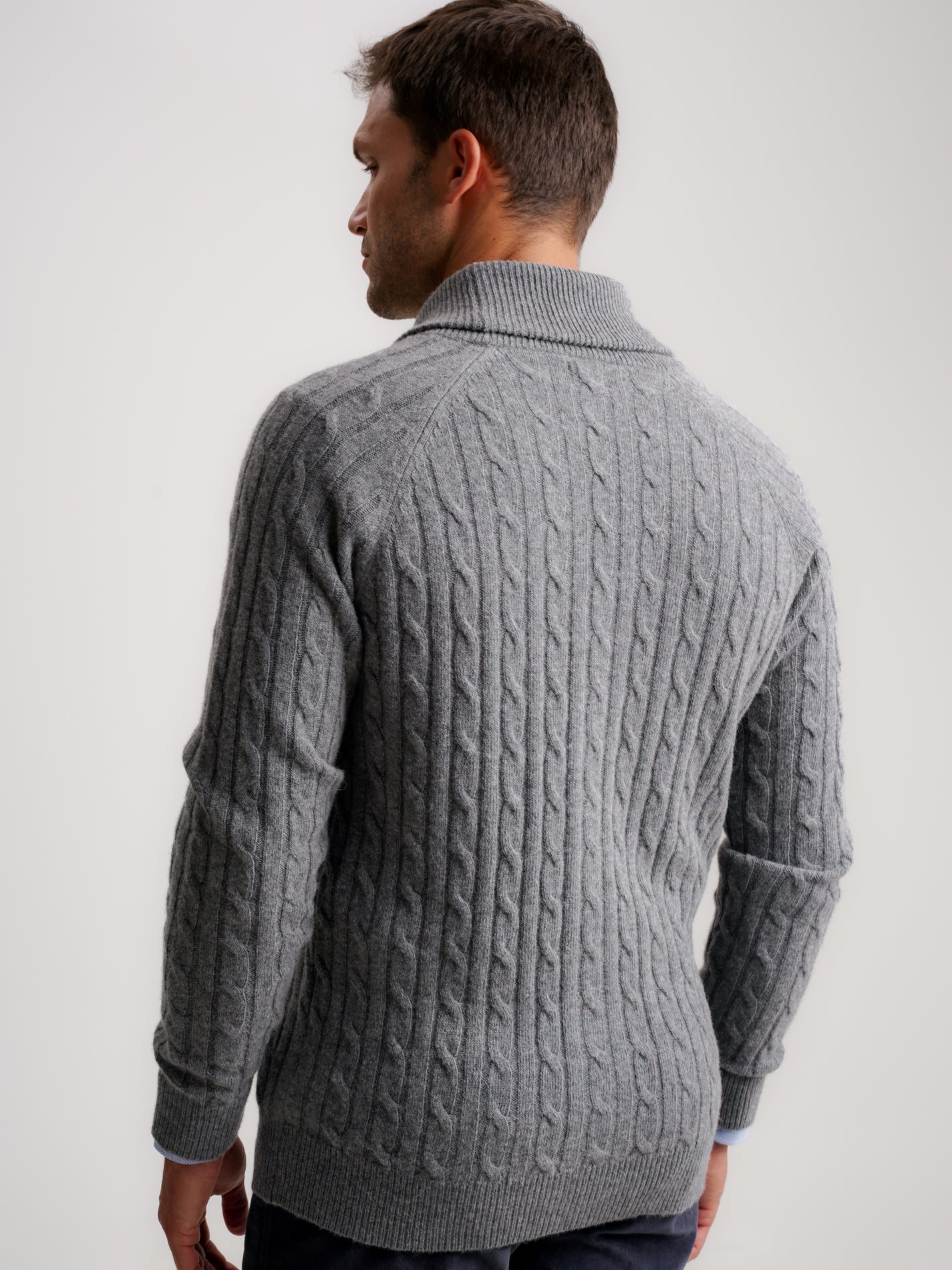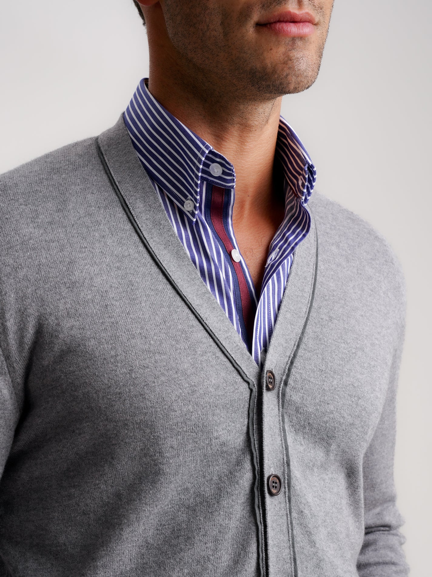 Cardigan Lã Merino Fino Cinzento