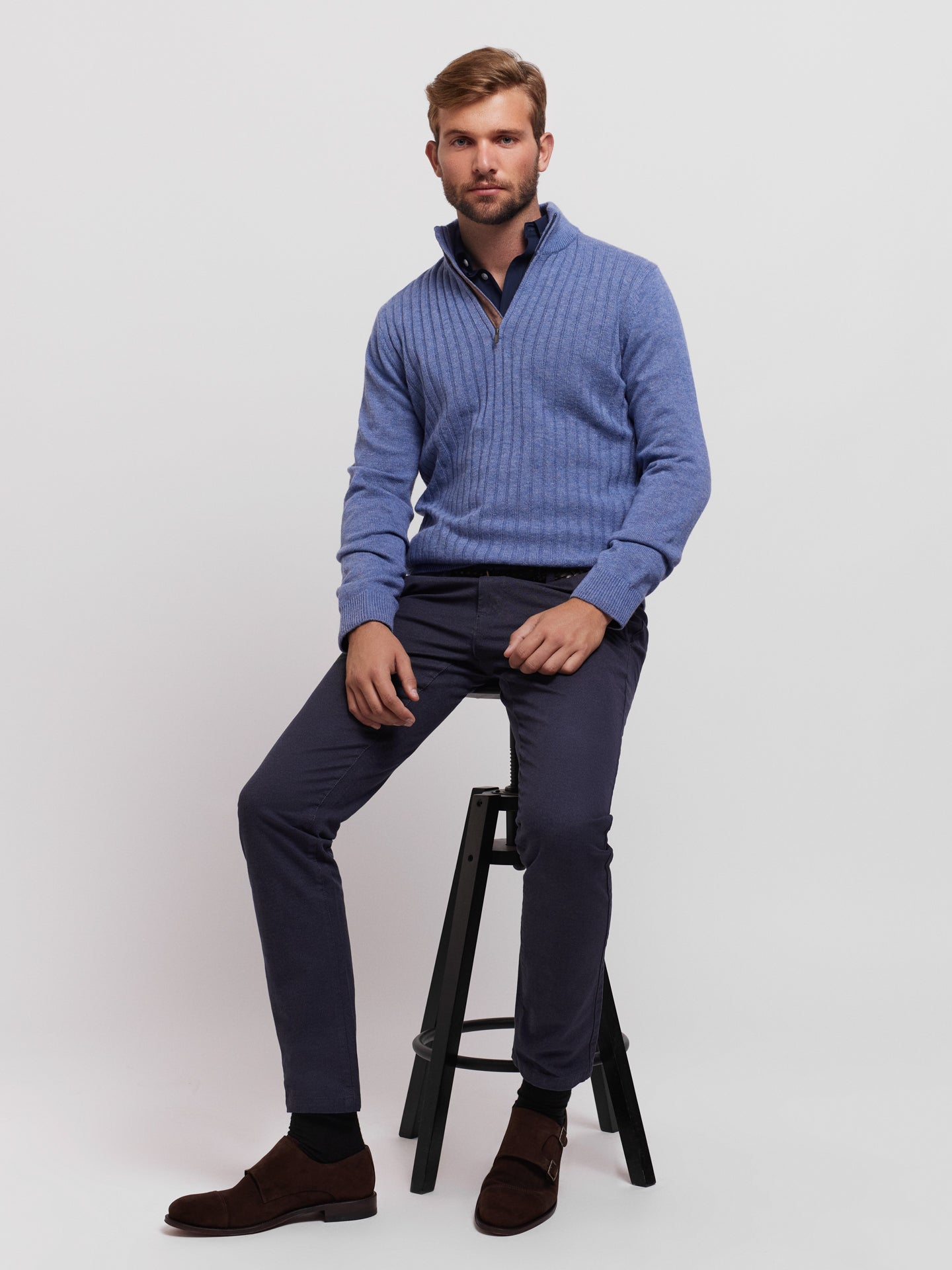Pullover Lã Merino Fino Azul