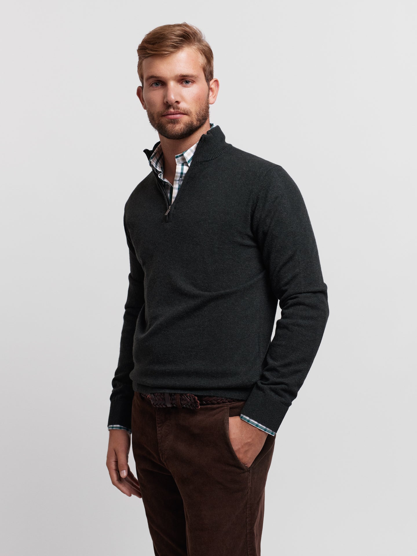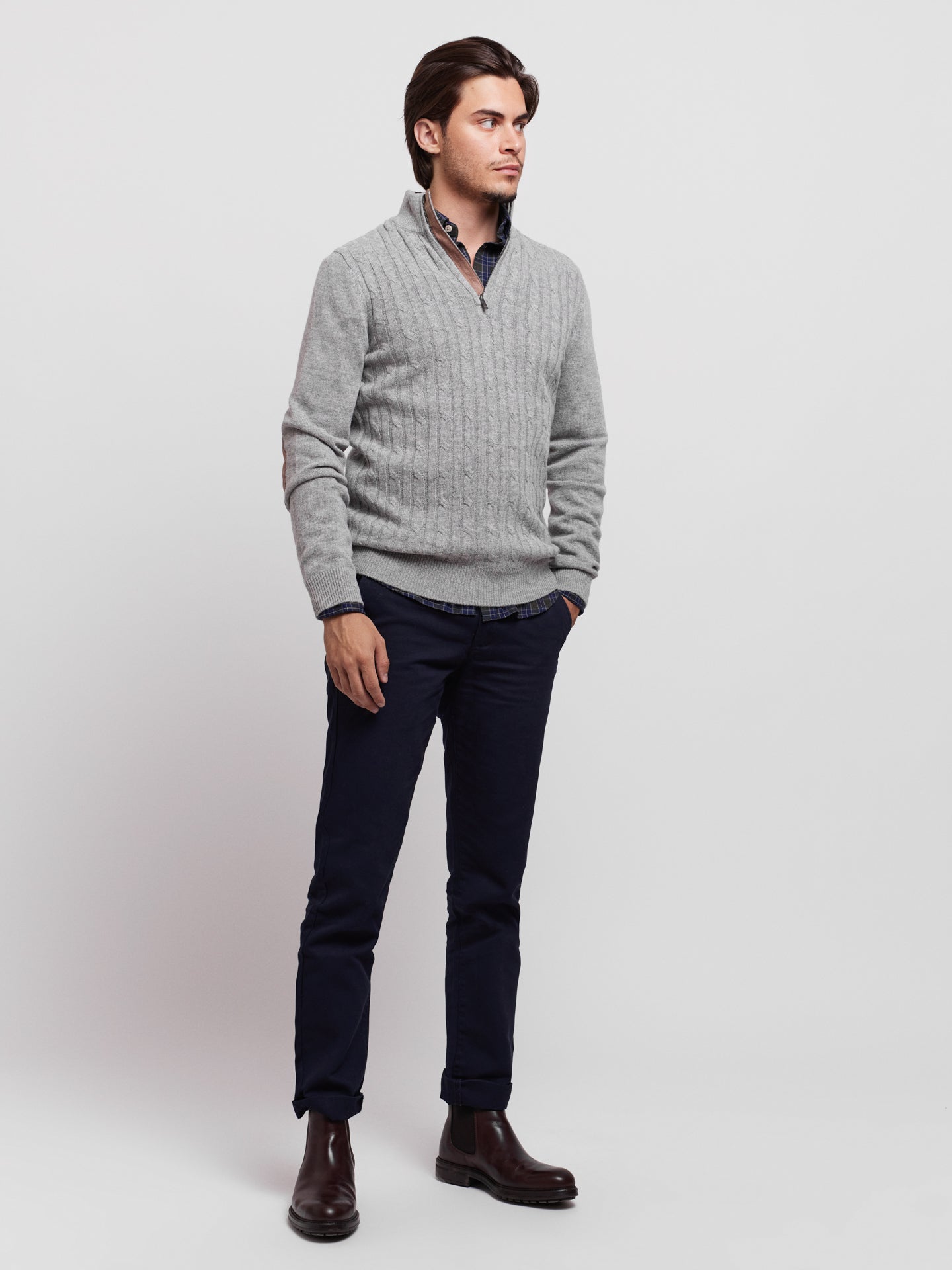 Pullover Caxemira Fino Cinzento