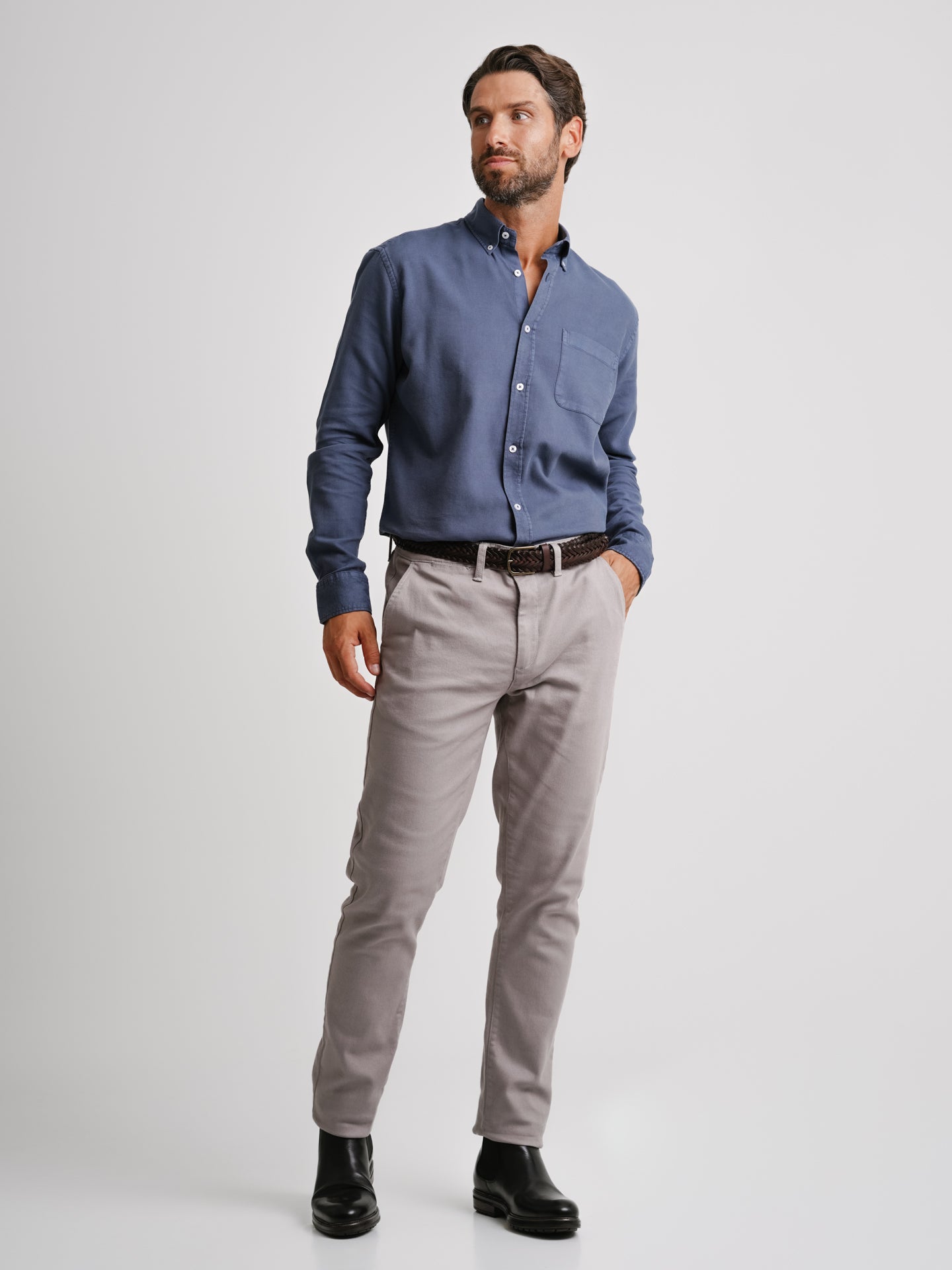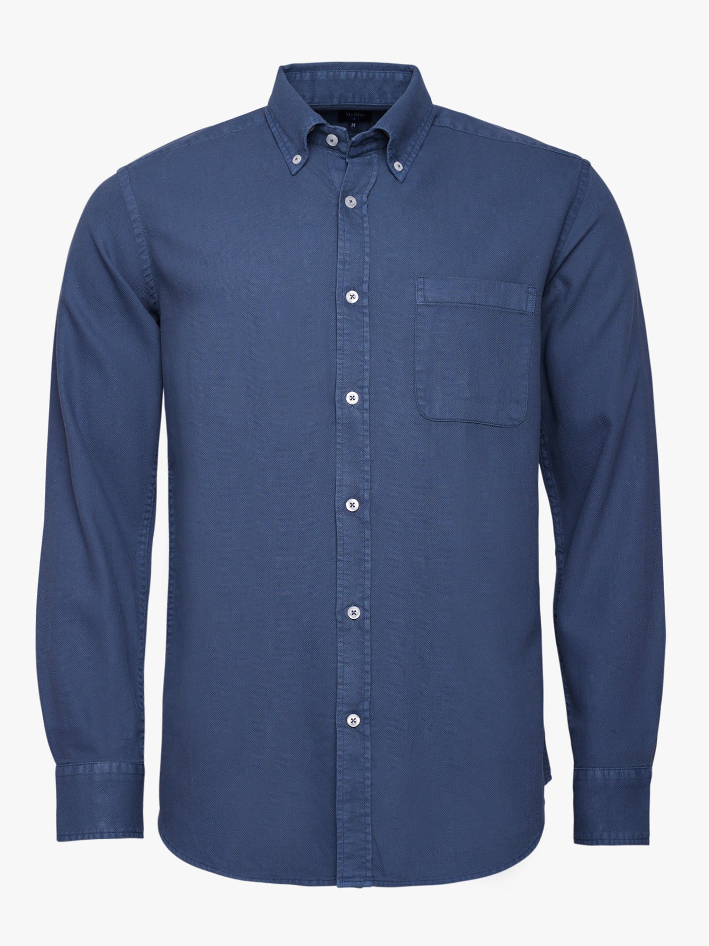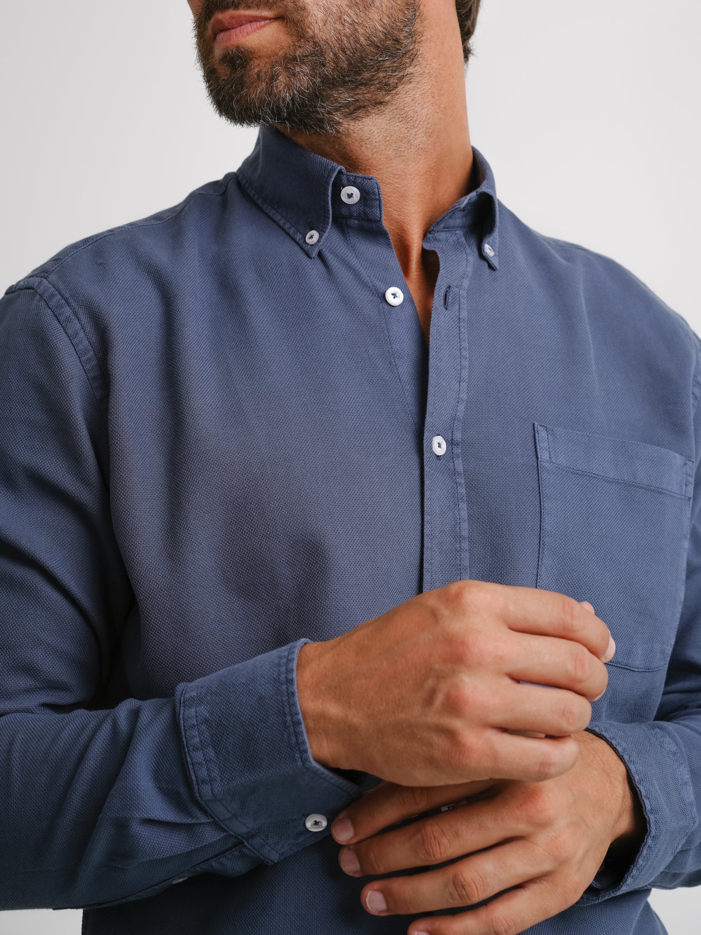 Camisa Regular Fit Estruturada Azul Algodão Liso