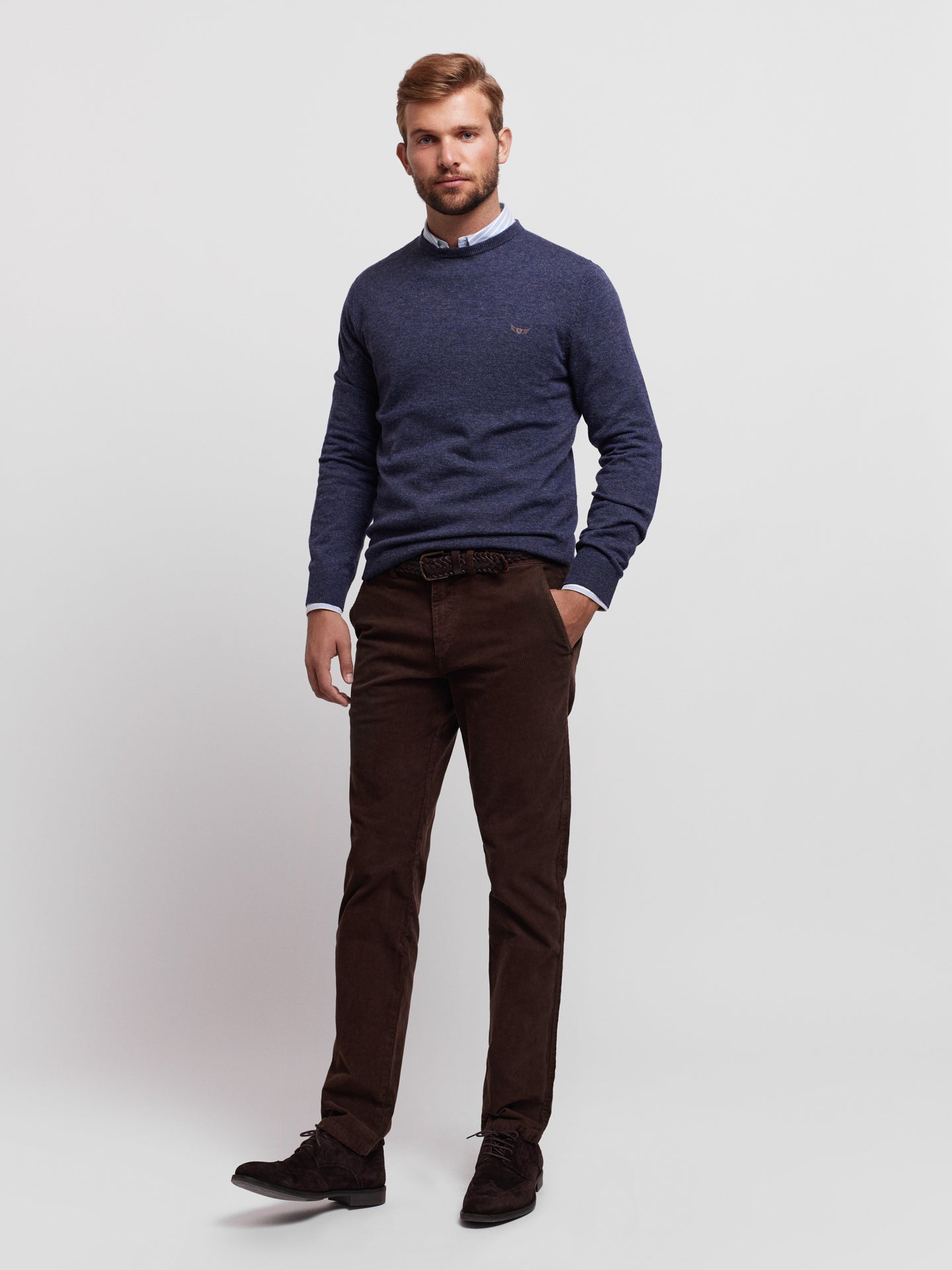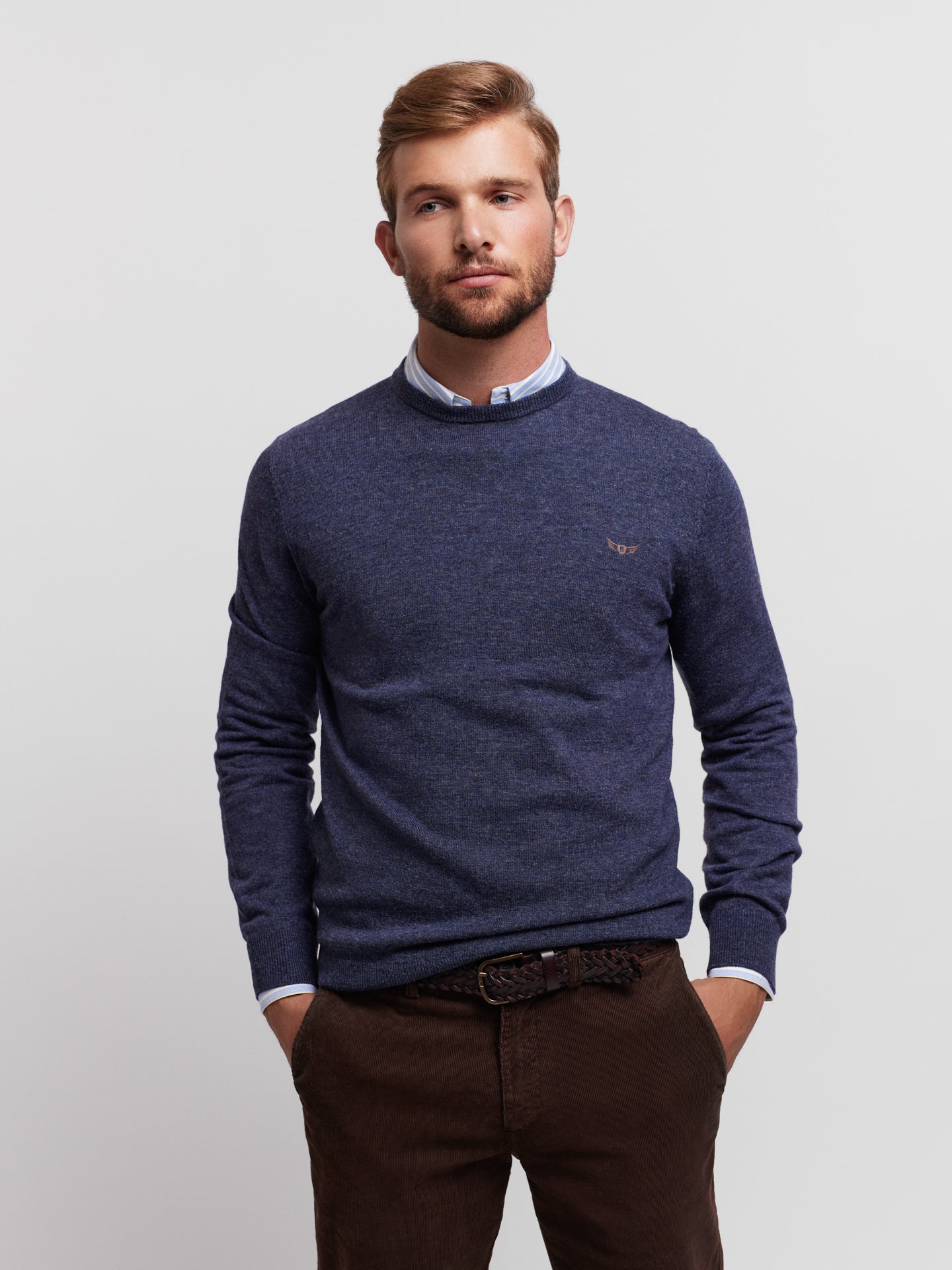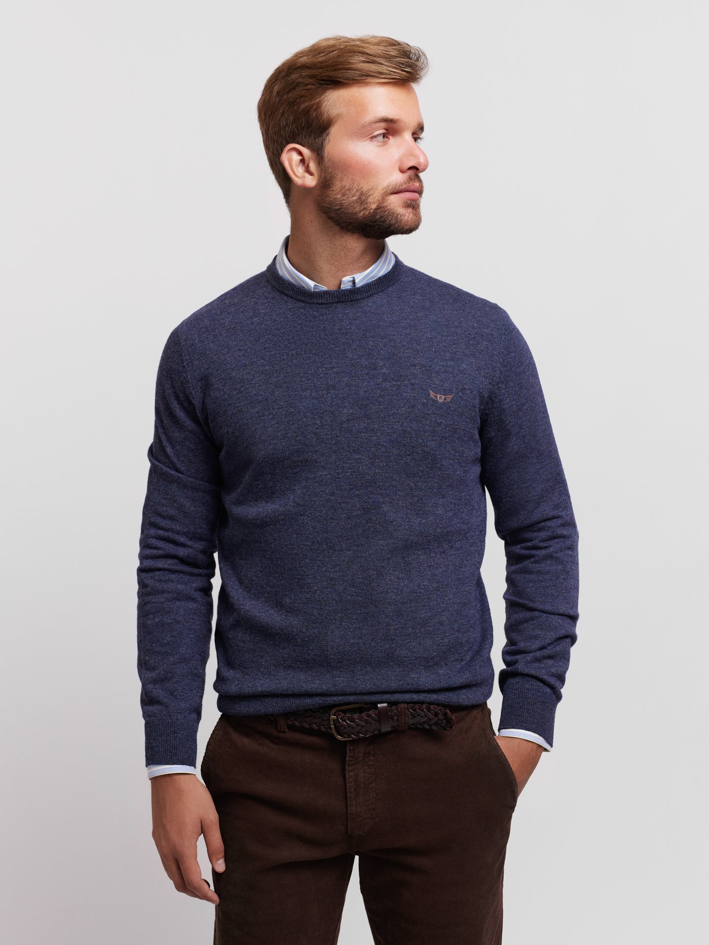 Pullover Regular Fit Azul Manga CompridaManga Comprida Liso Com Logo