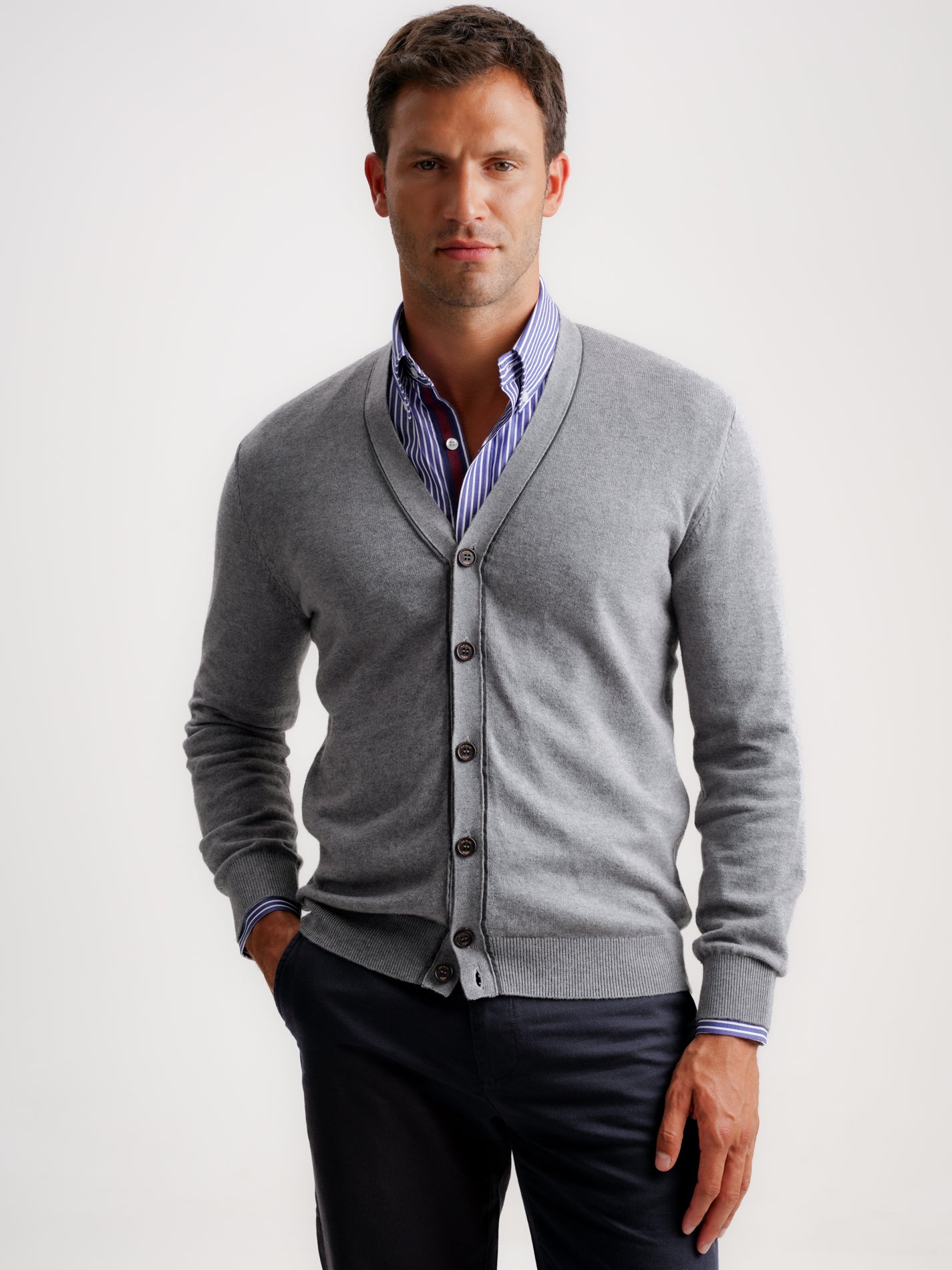 Cardigan Lã Merino Fino Cinzento Liso Sem Logo e Sem Bolso