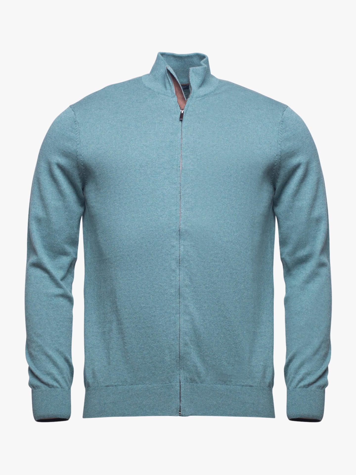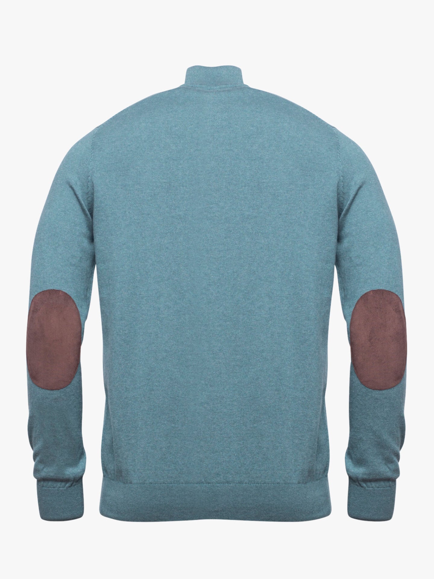 Camisola Homem Regular Fit Algodão e Cashemere Verde Meia gola com cotoveleira e fecho de correr.