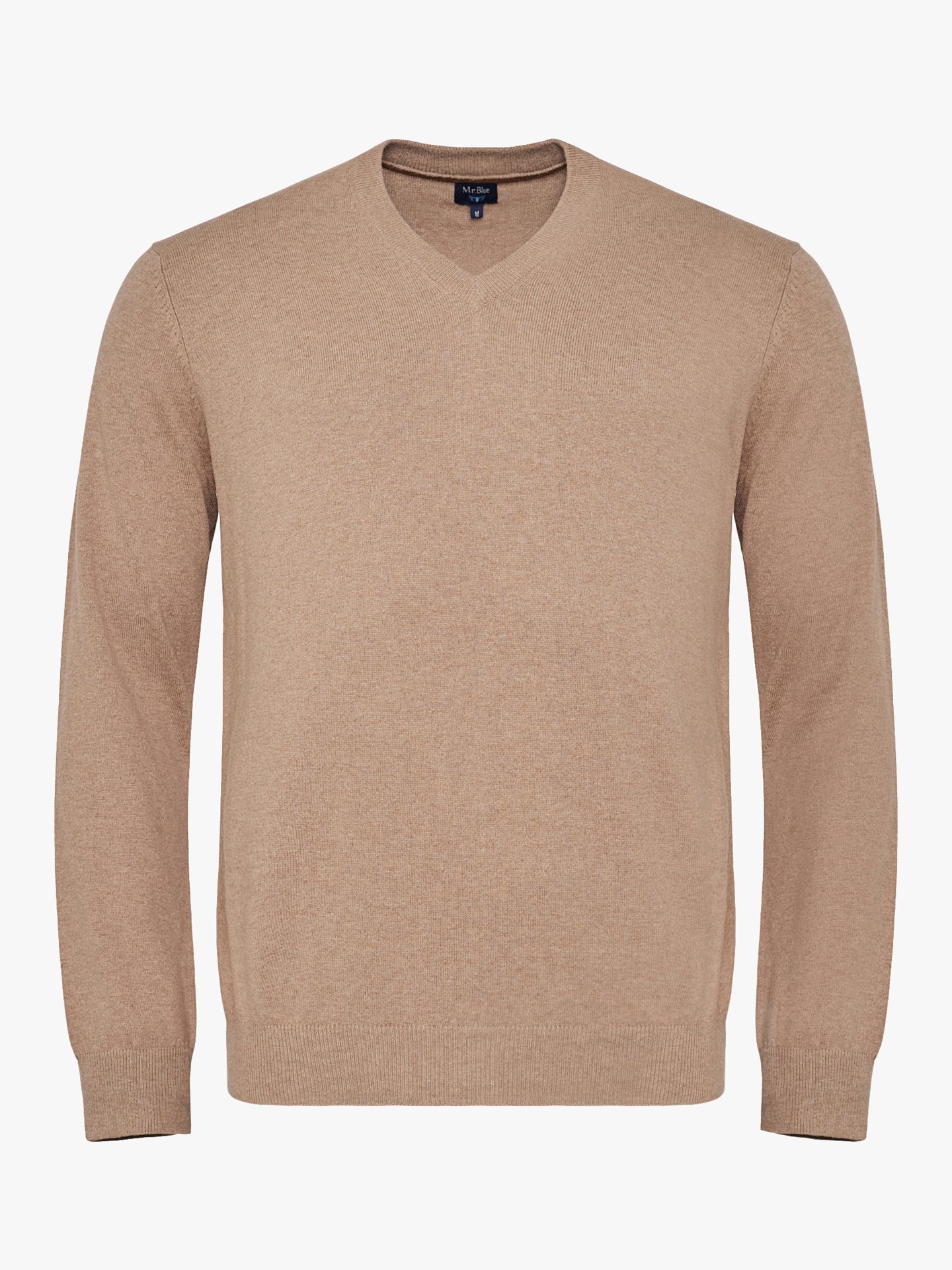 Pullover Caxemira Fino Castanho Liso Sem Logo e Sem Bolso