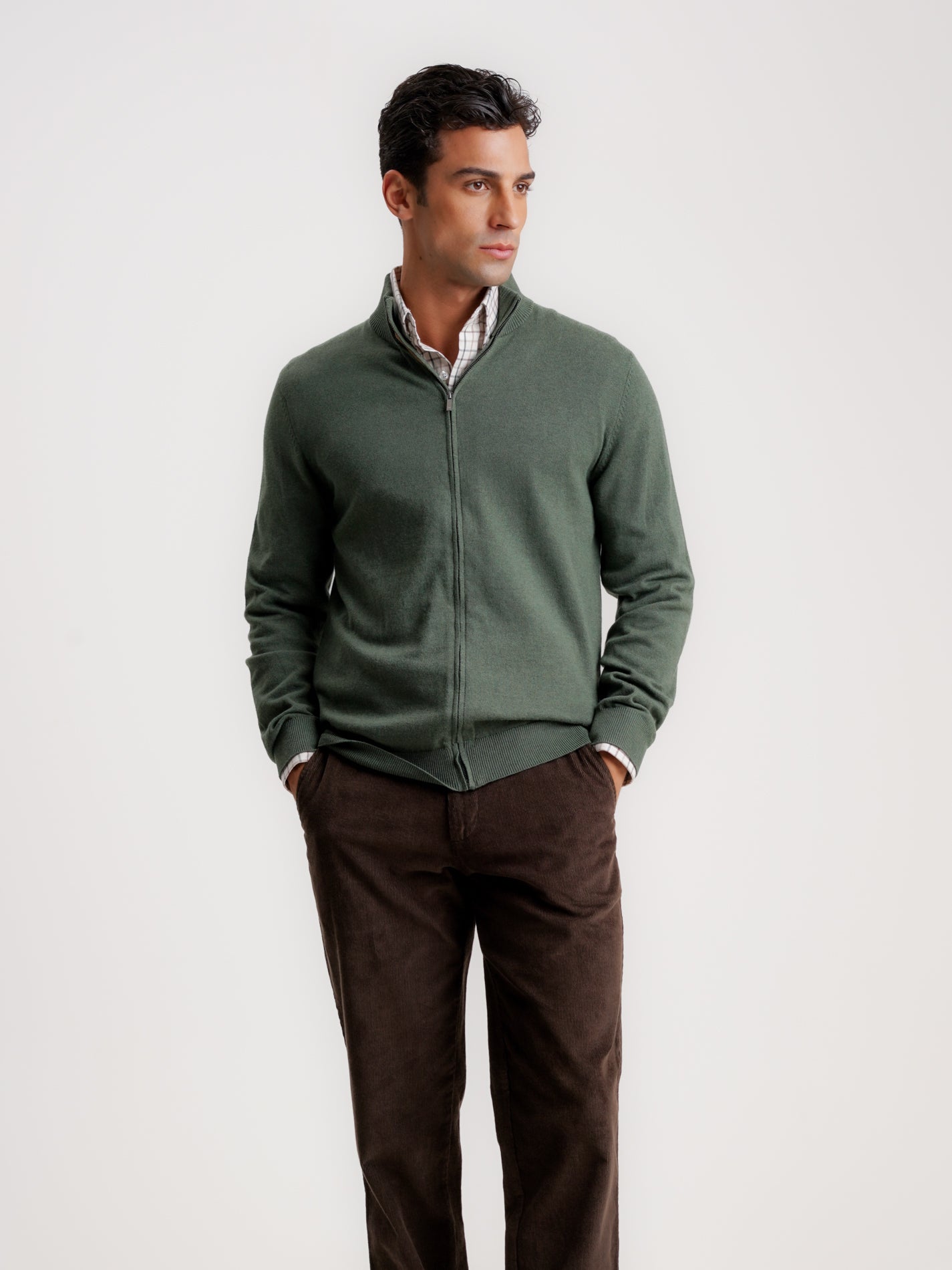 Pullover Lã Merino Fino Verde Liso Sem Logo e Sem Bolso