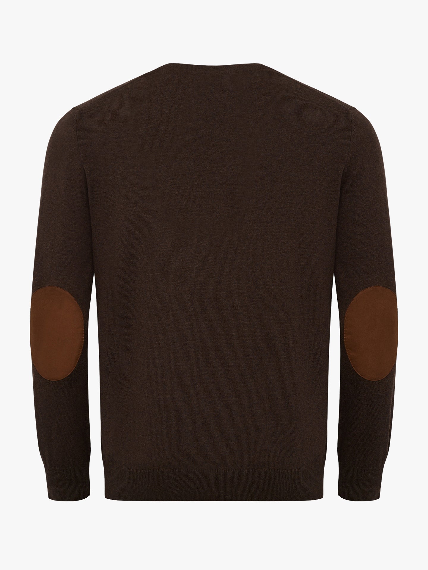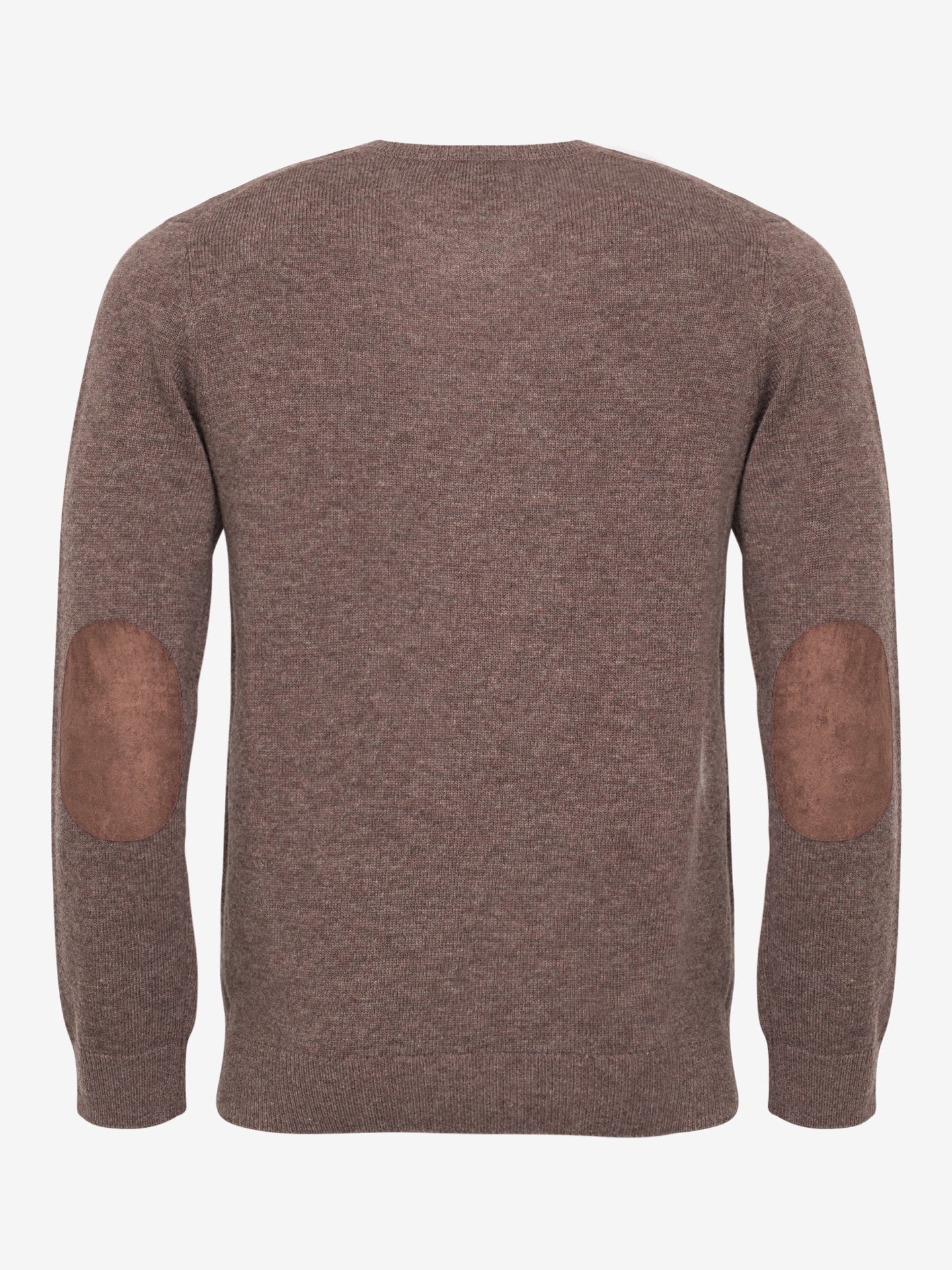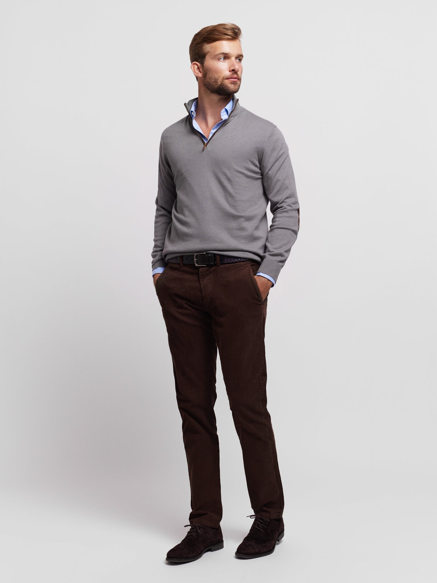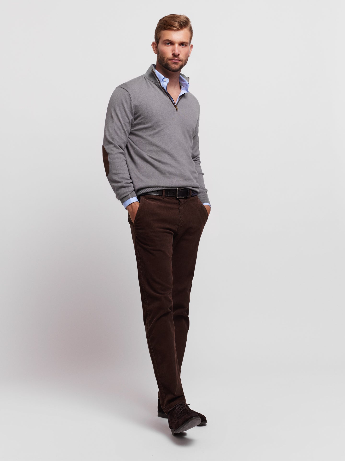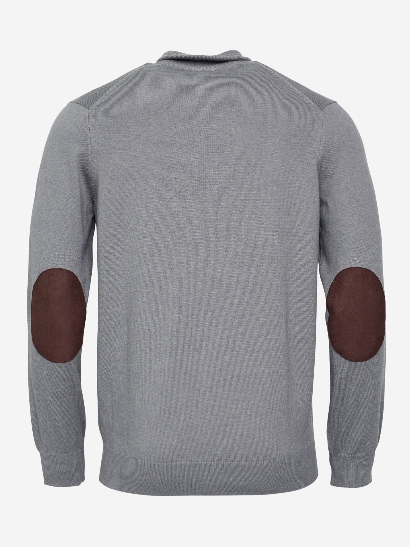 Cardigan beige em algodão e caxemira com fecho de correr e cotoveleiras