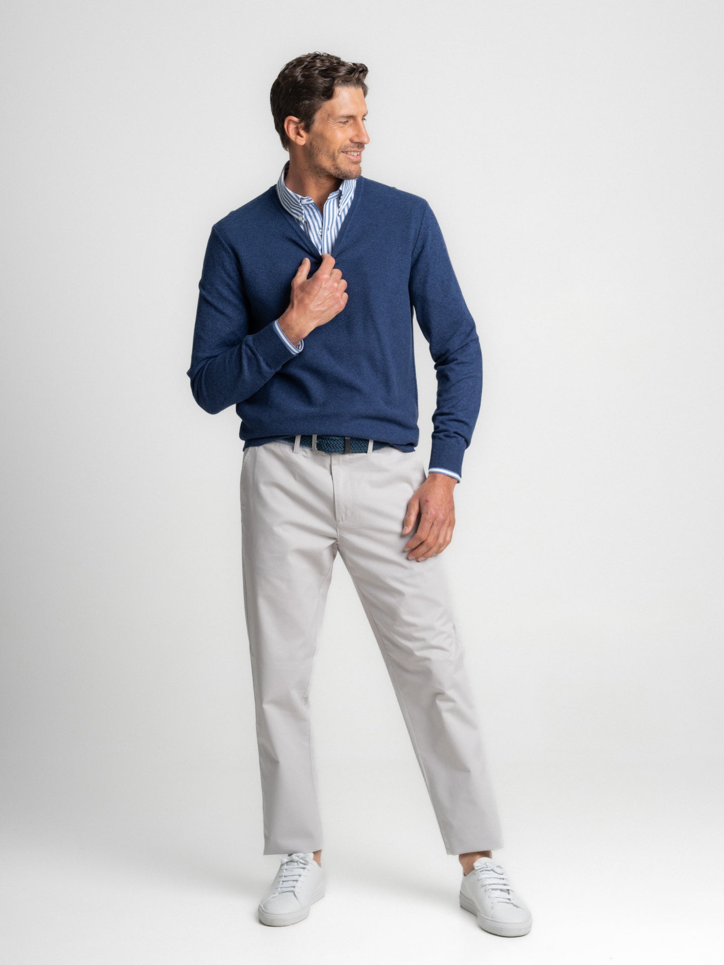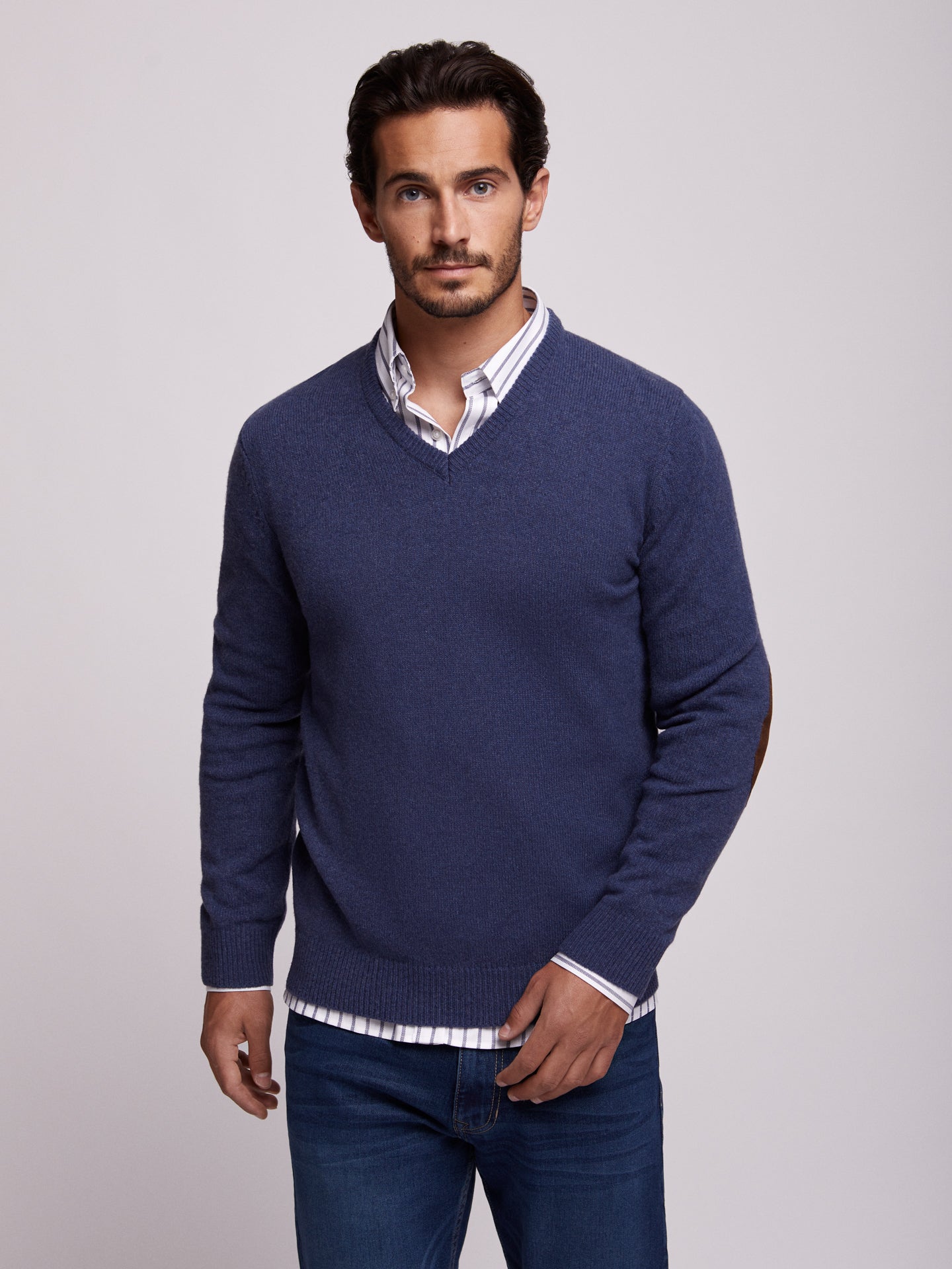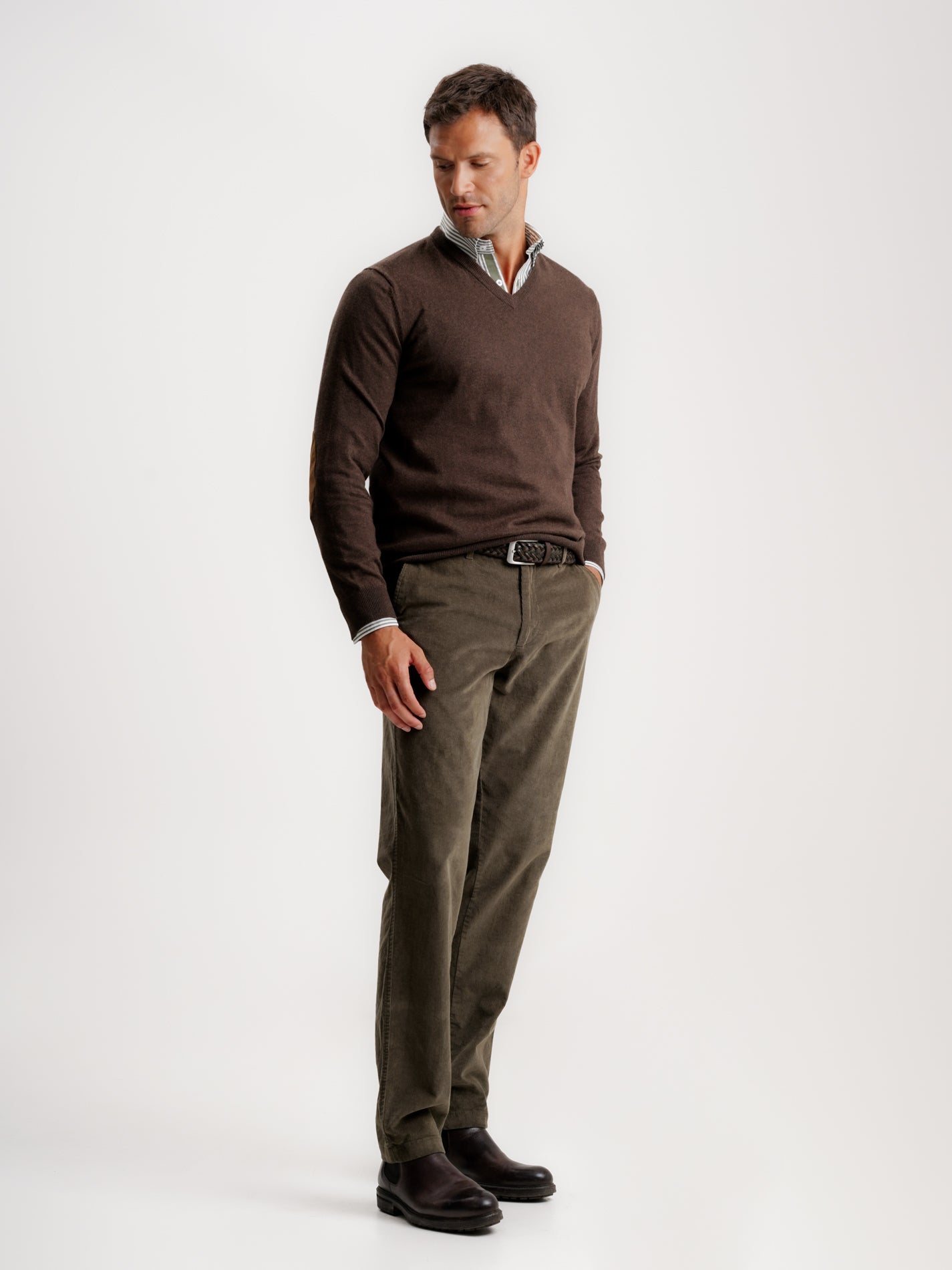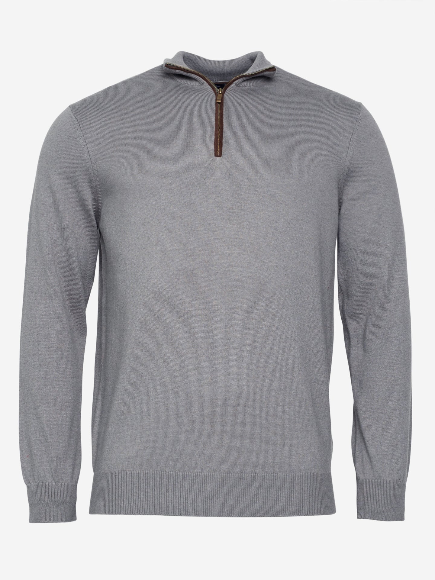 Cardigan beige em algodão e caxemira com fecho de correr e cotoveleiras