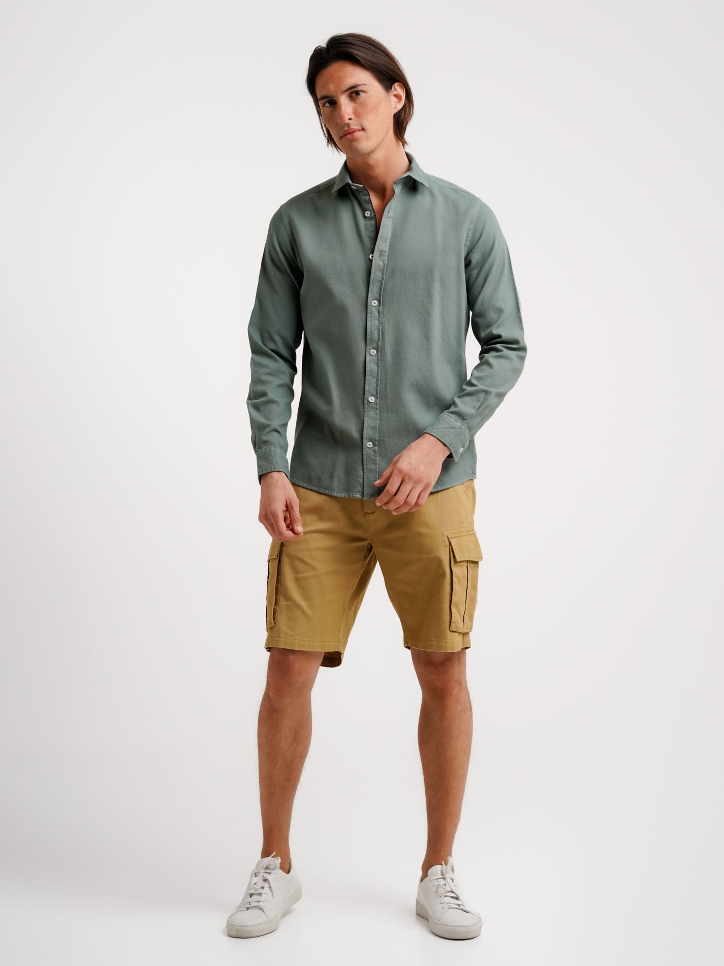 Camisa de algodón azul lisa estructurada de corte regular