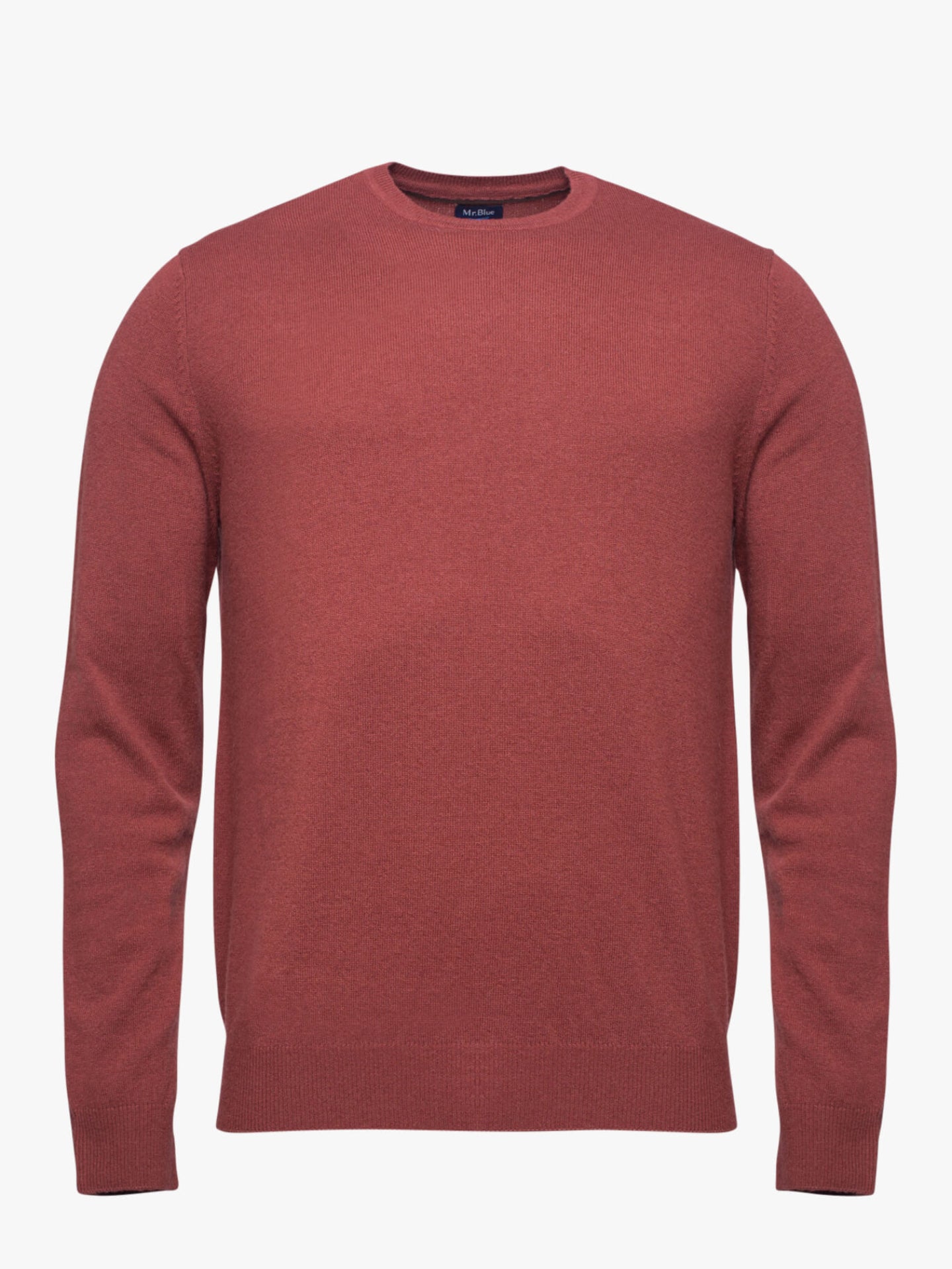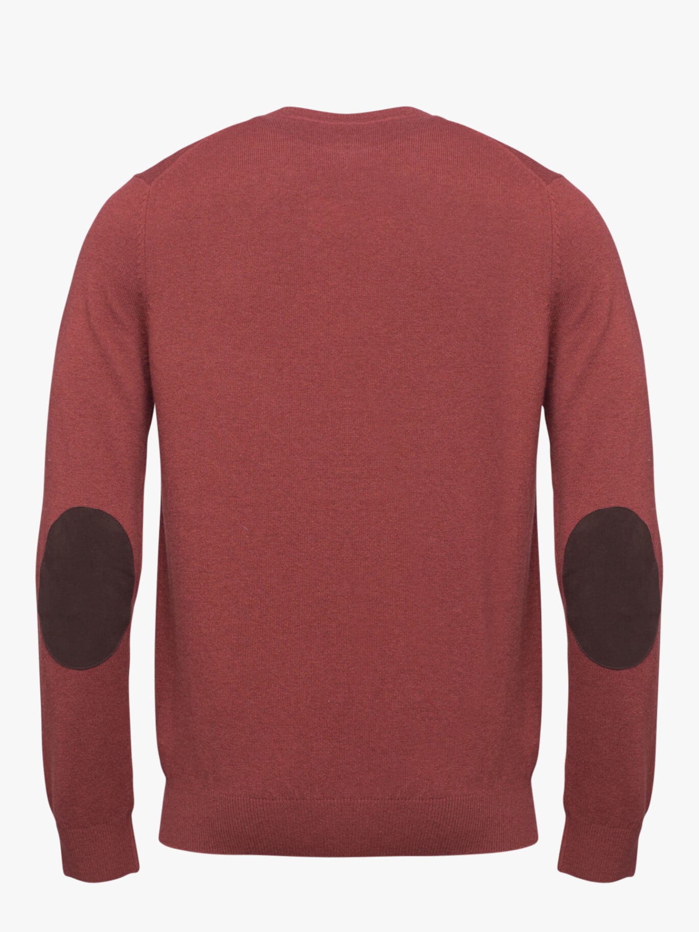 Suéter de lana color naranja ladrillo con cuello en V y coderas