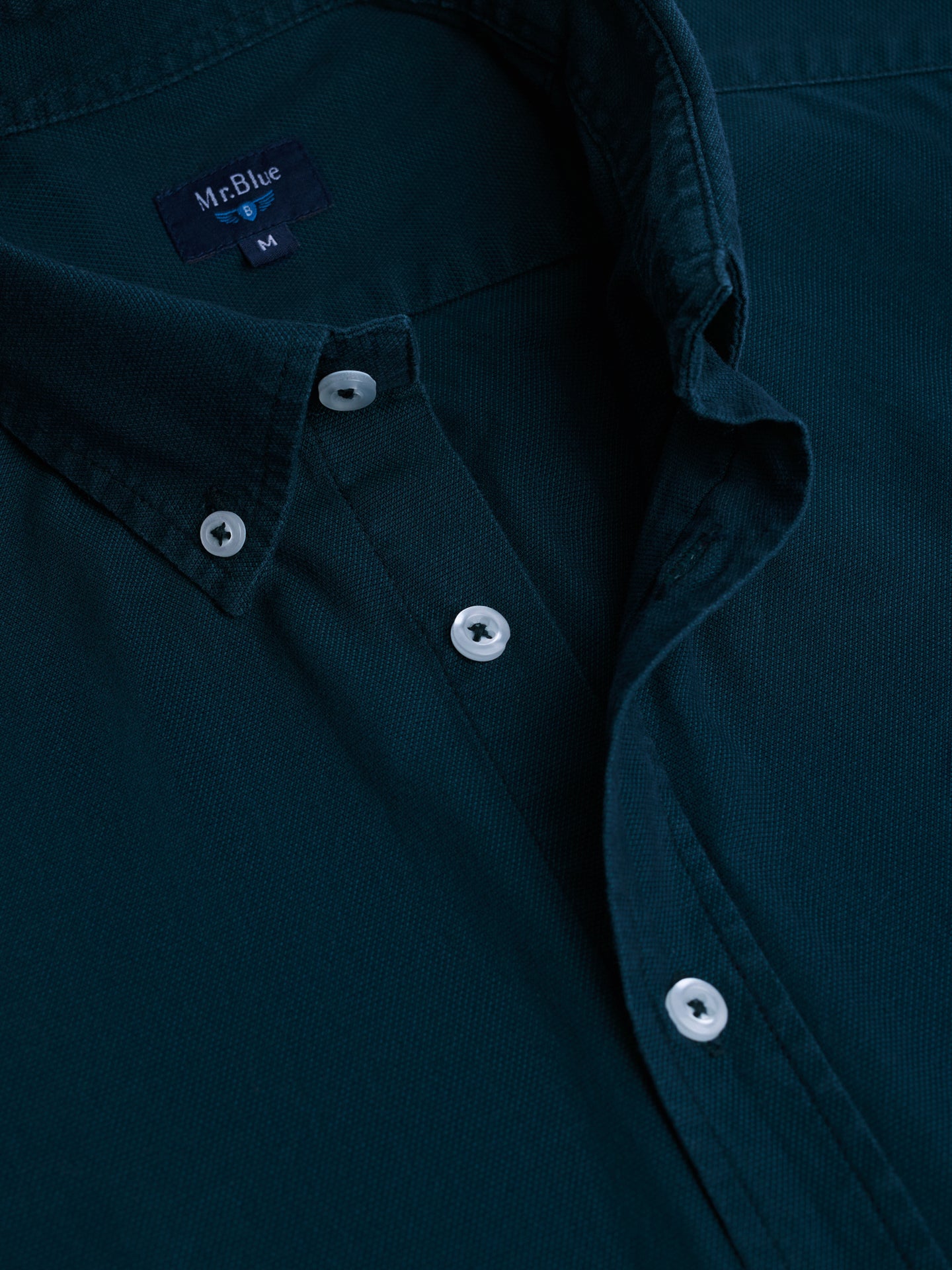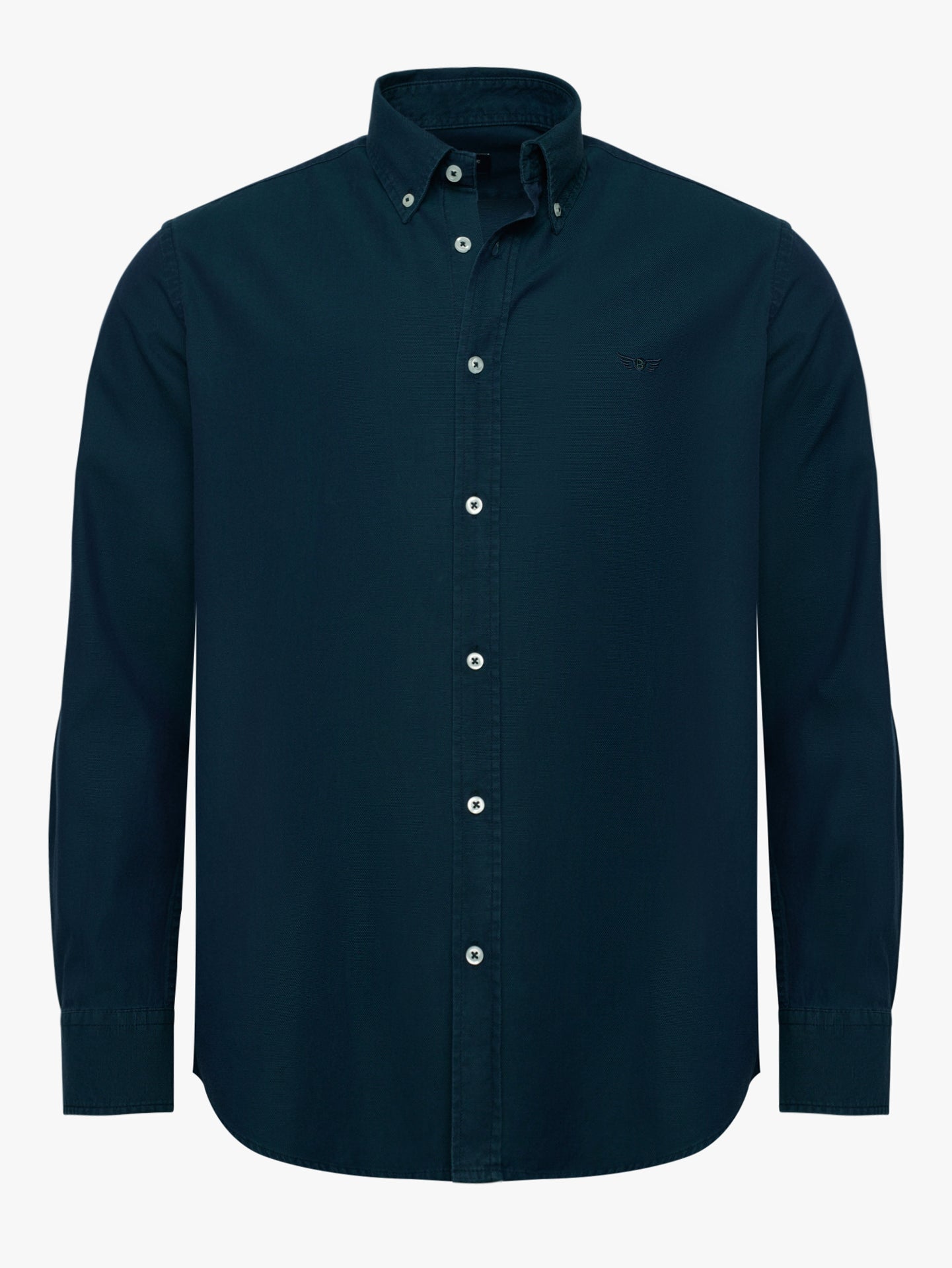 Camisa Dobby de manga larga verde de corte regular con logotipo