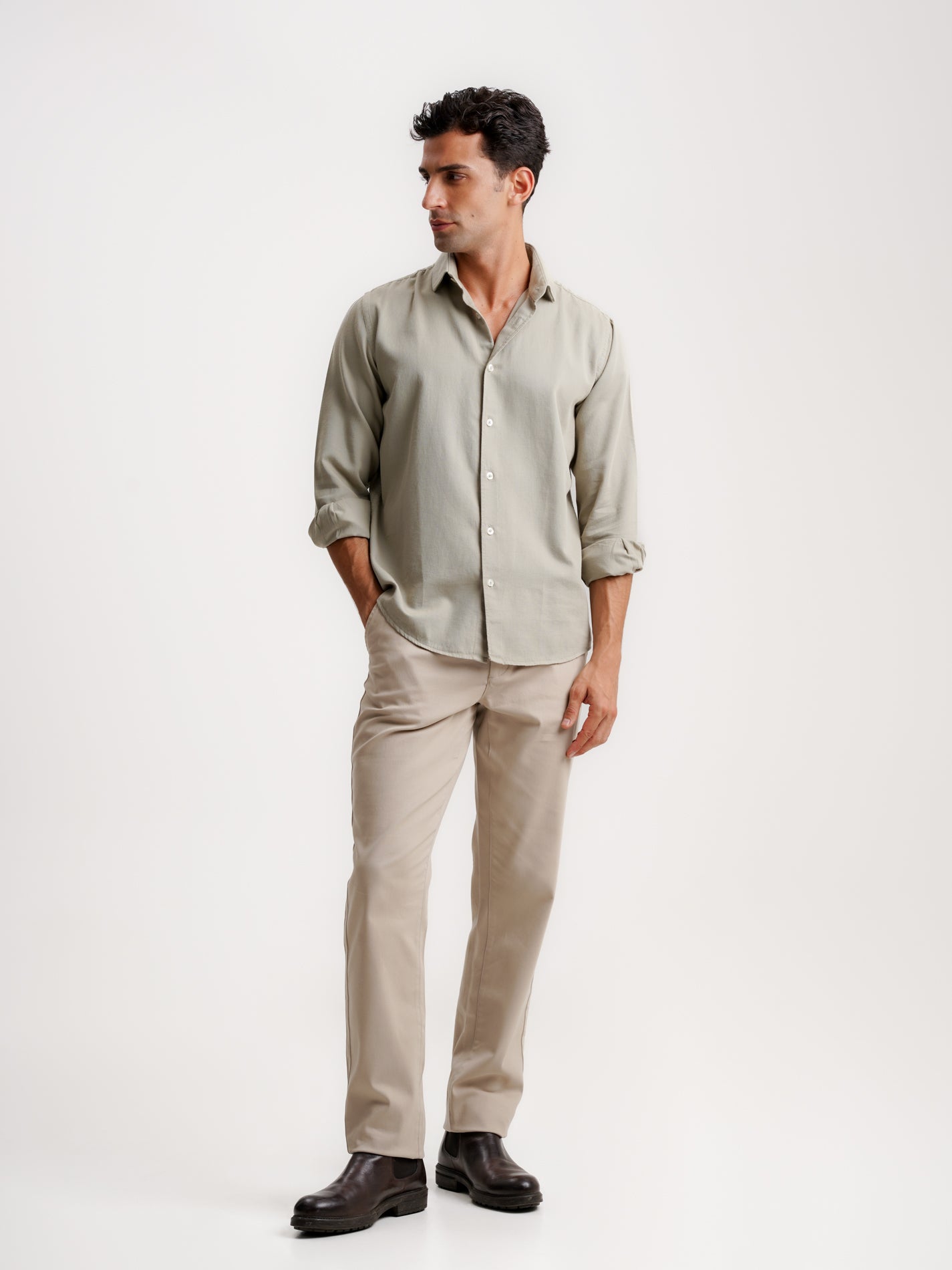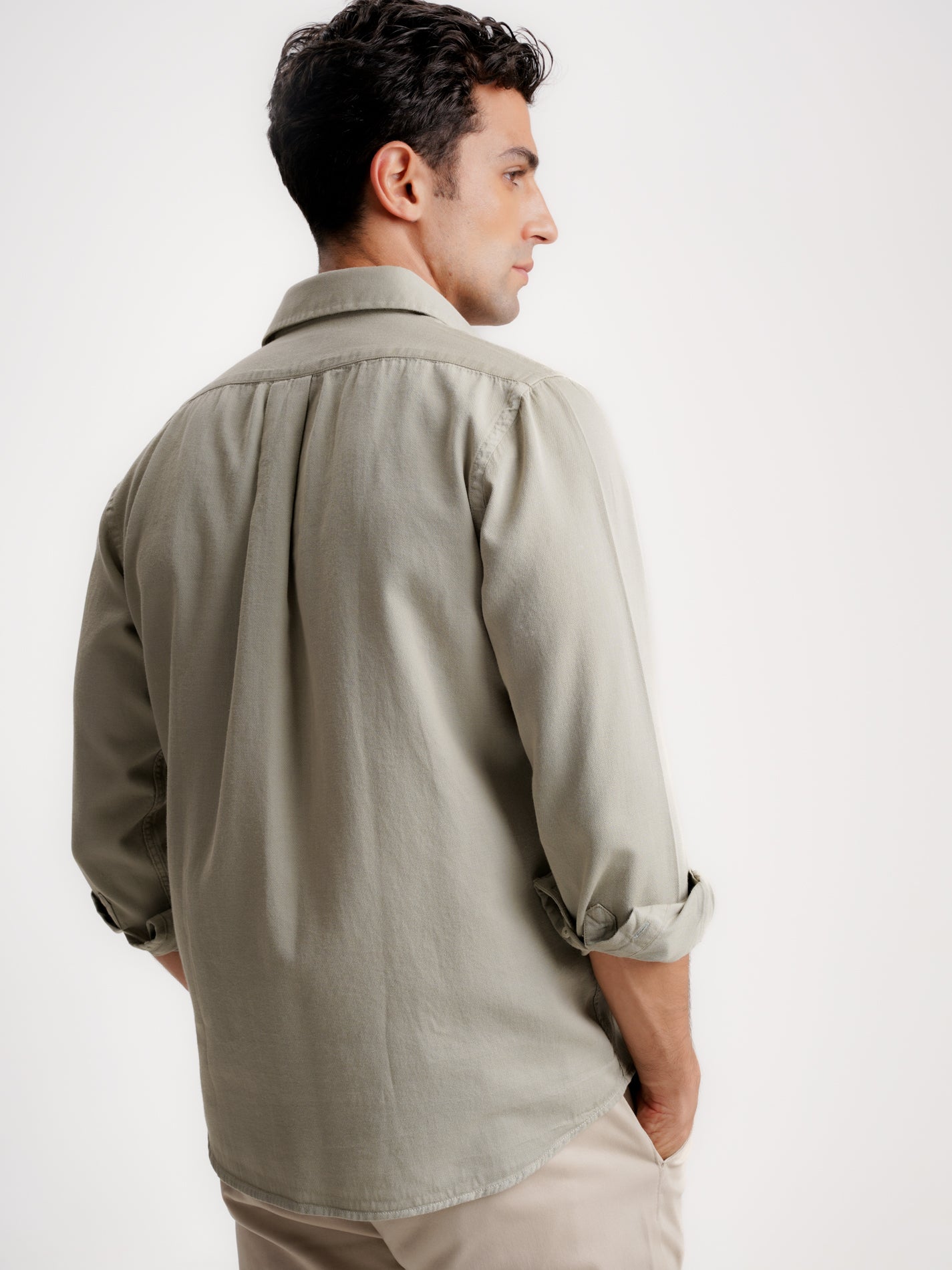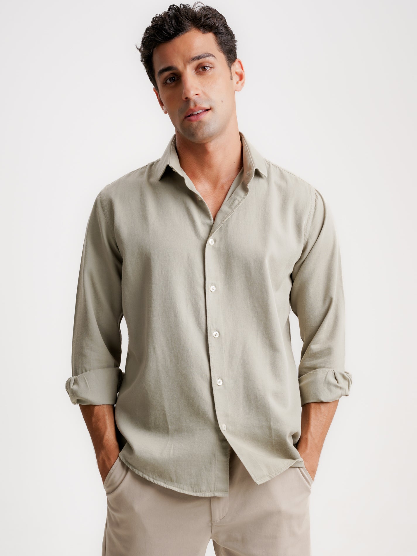 Camisa Dobby Verde Regular Fit de Manga Larga Sin Logo y Sin Bolsillo Lisa