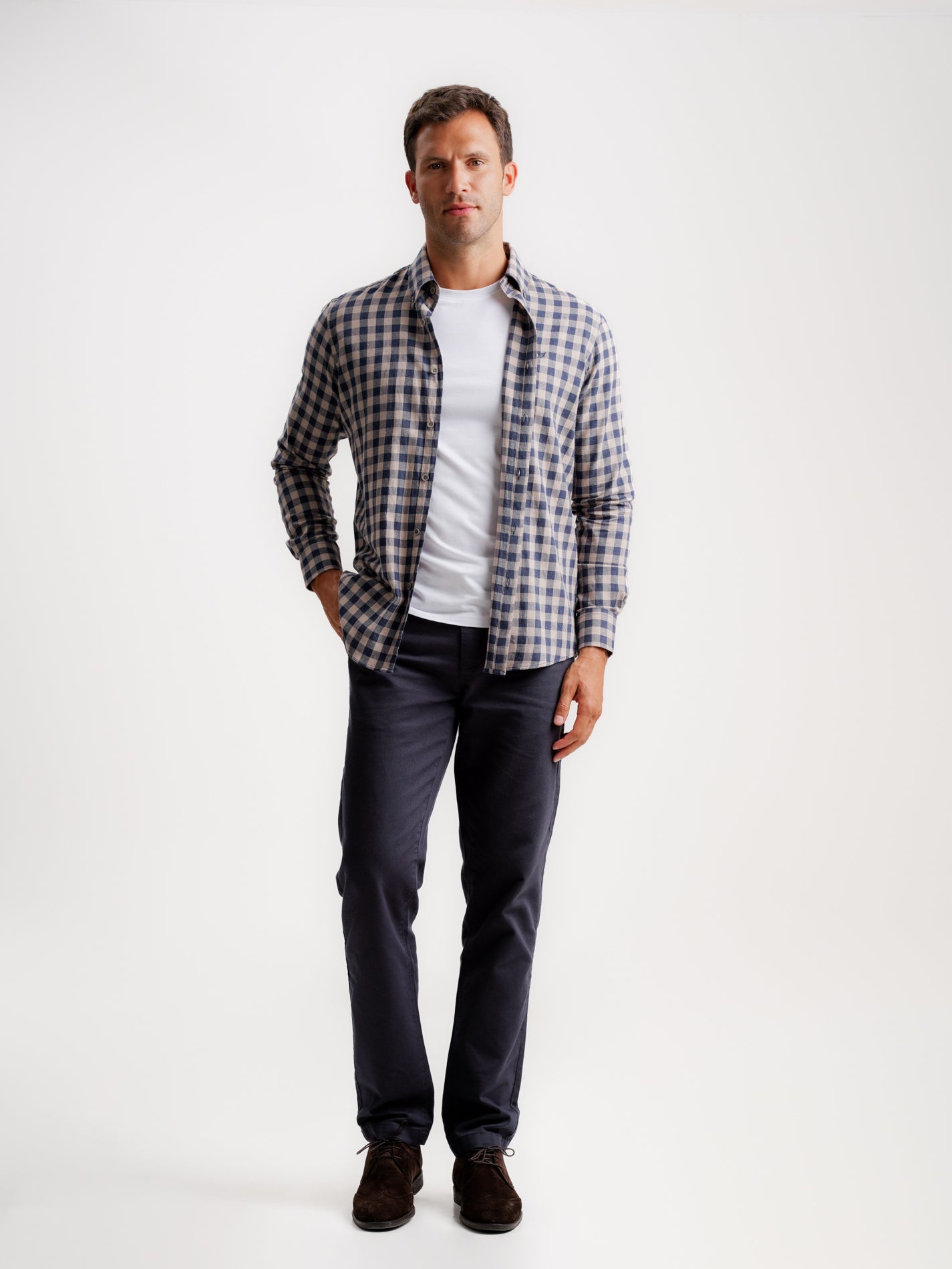 Camisa de franela beige de corte regular