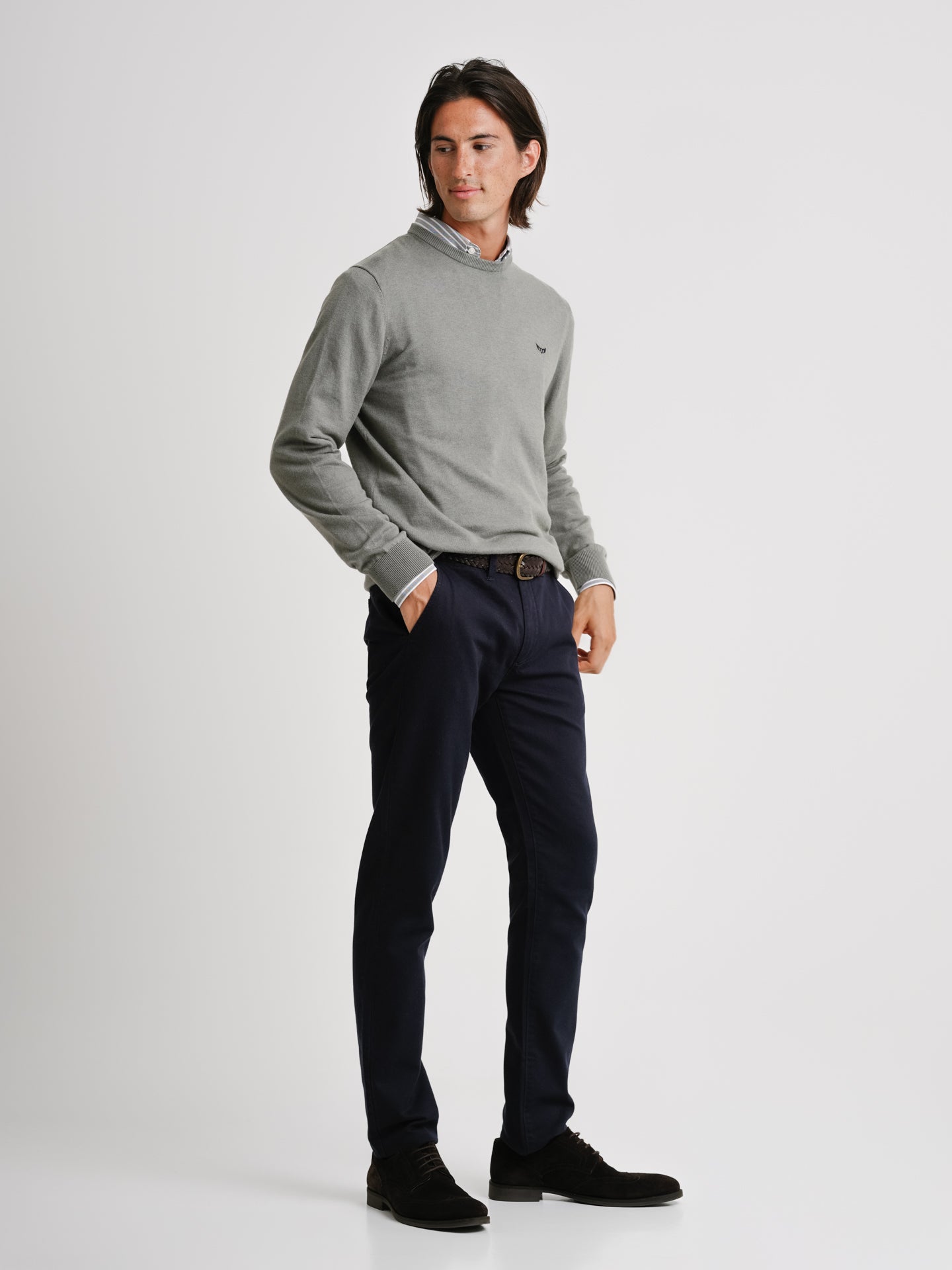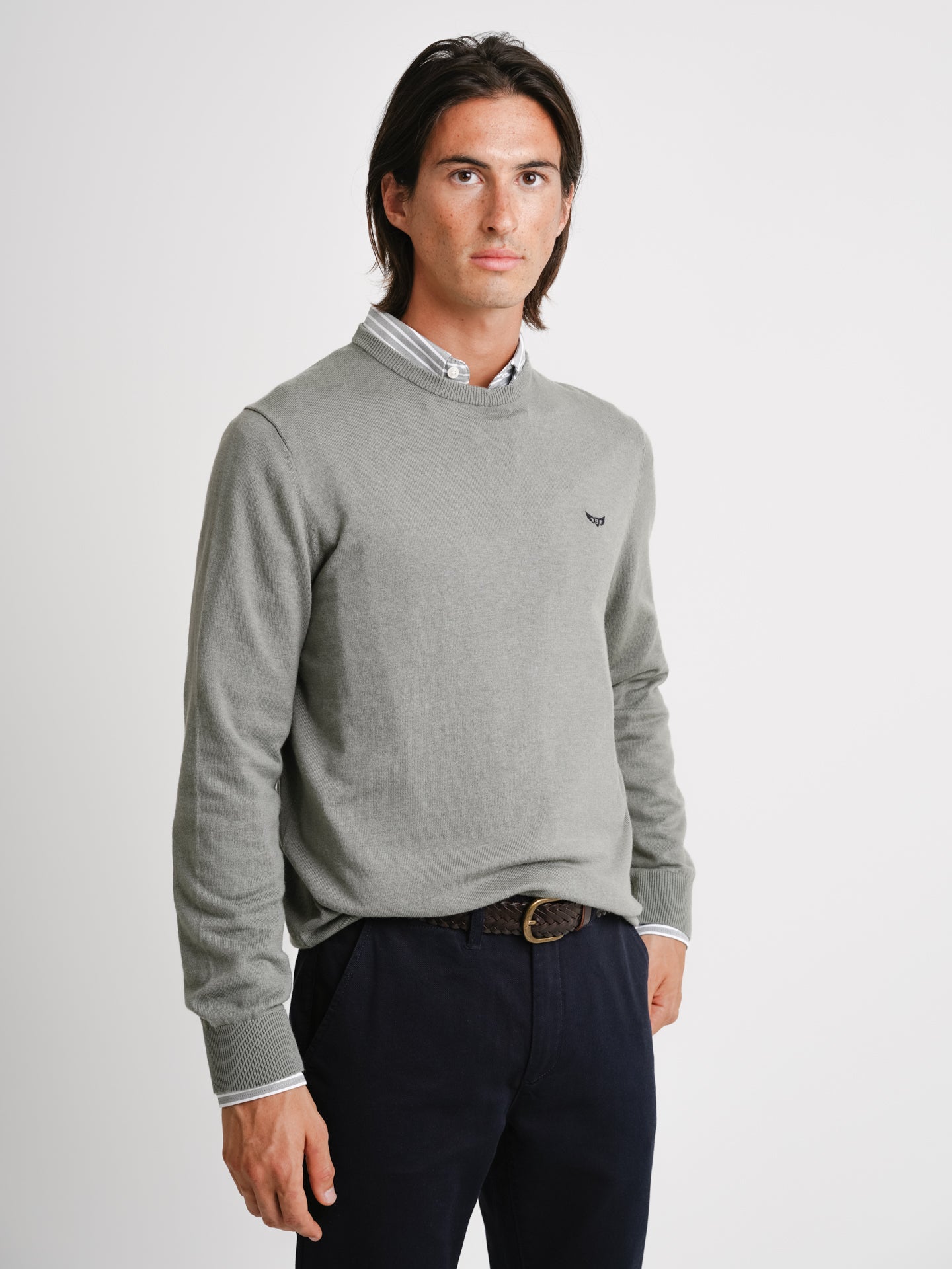 Jersey verde de lana merino fina de lana merino lisa con logotipo