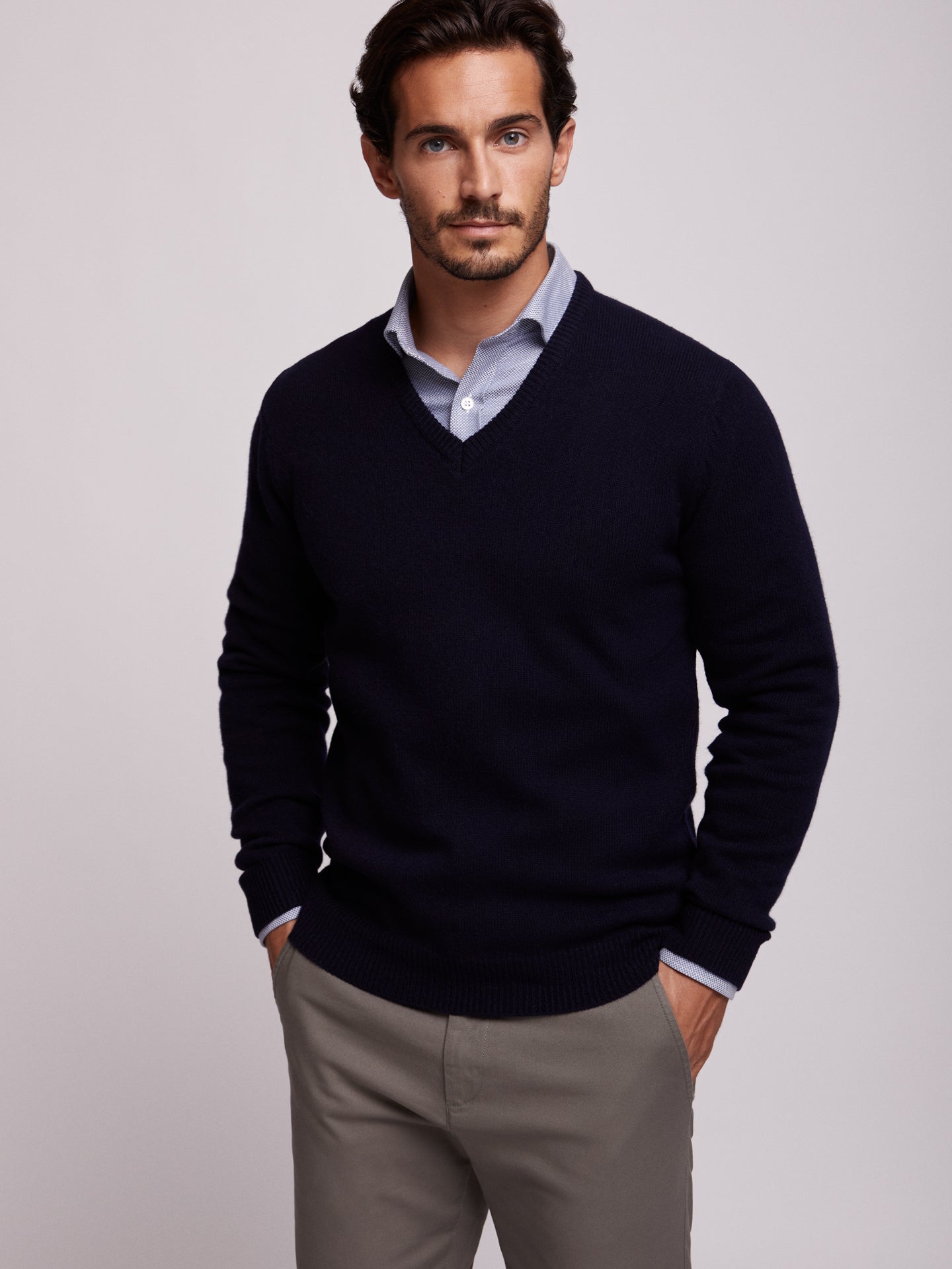 Suéter azul liso de corte regular