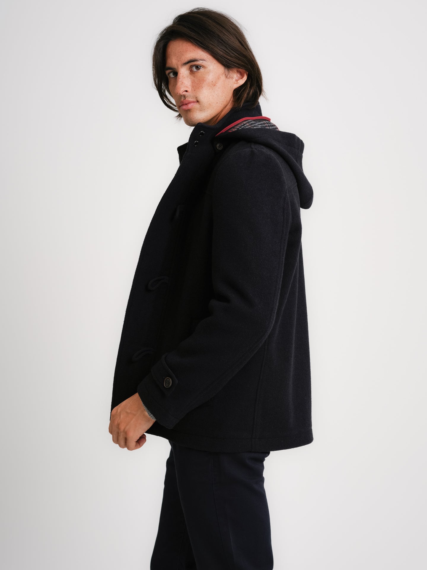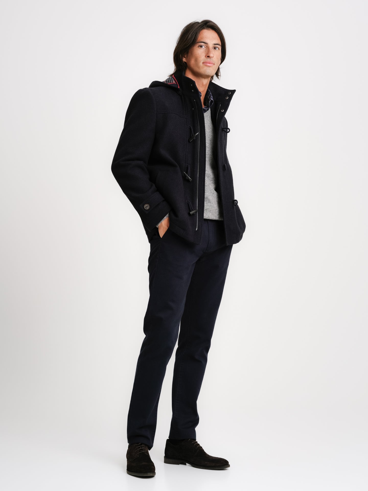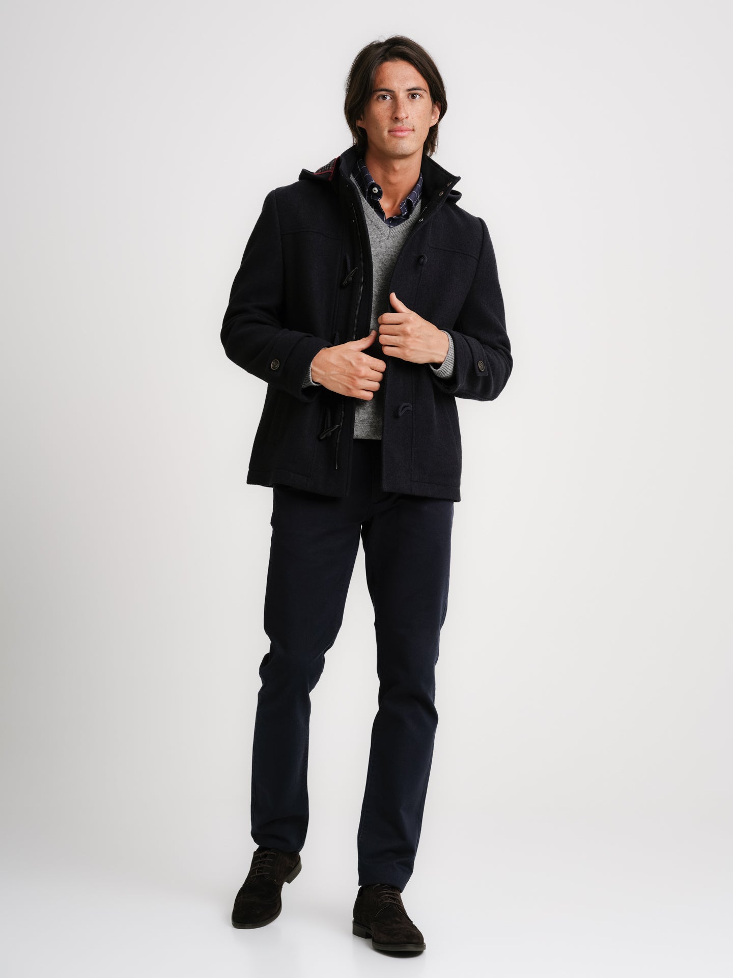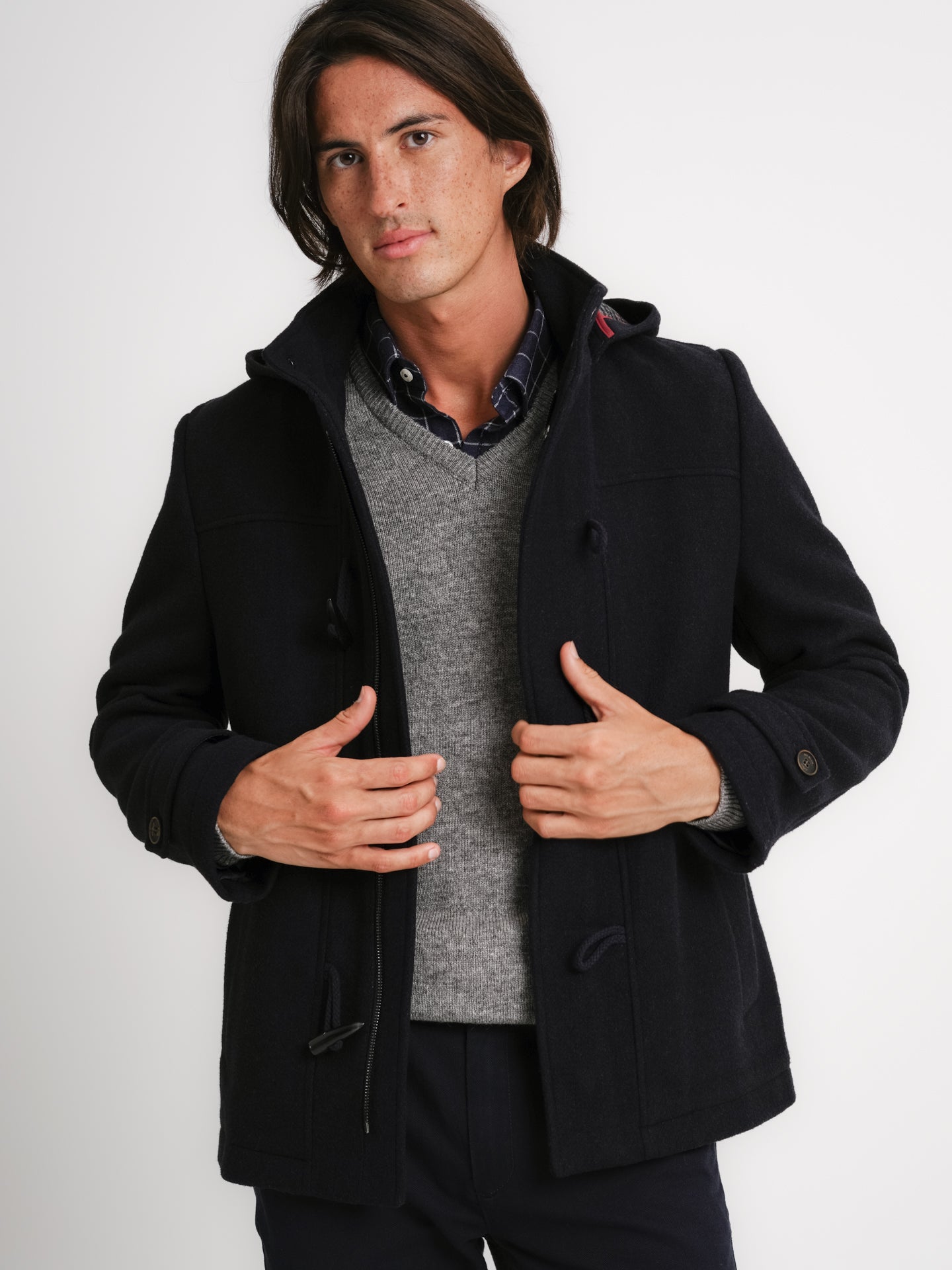 Abrigo de lana azul liso de corte regular