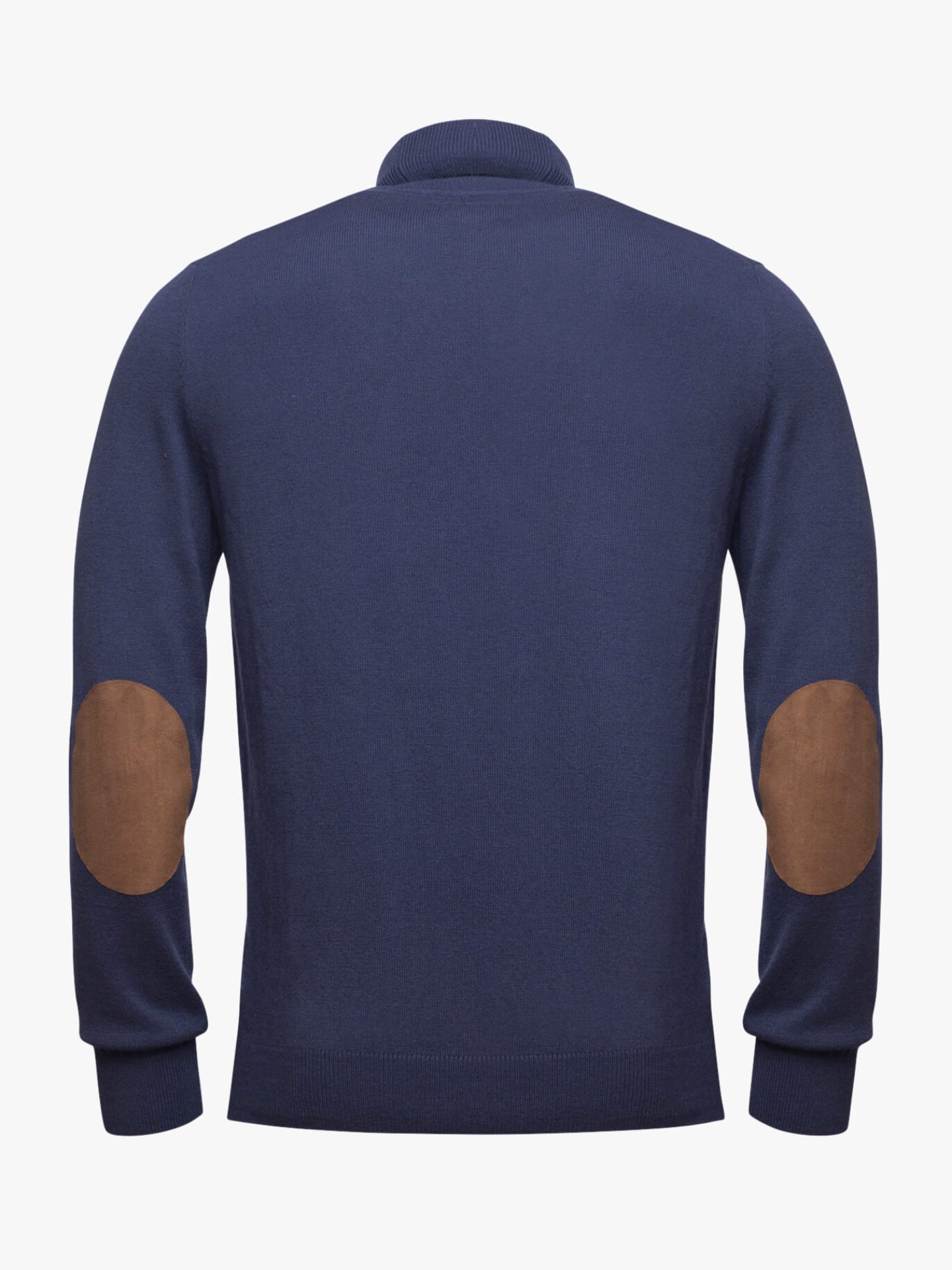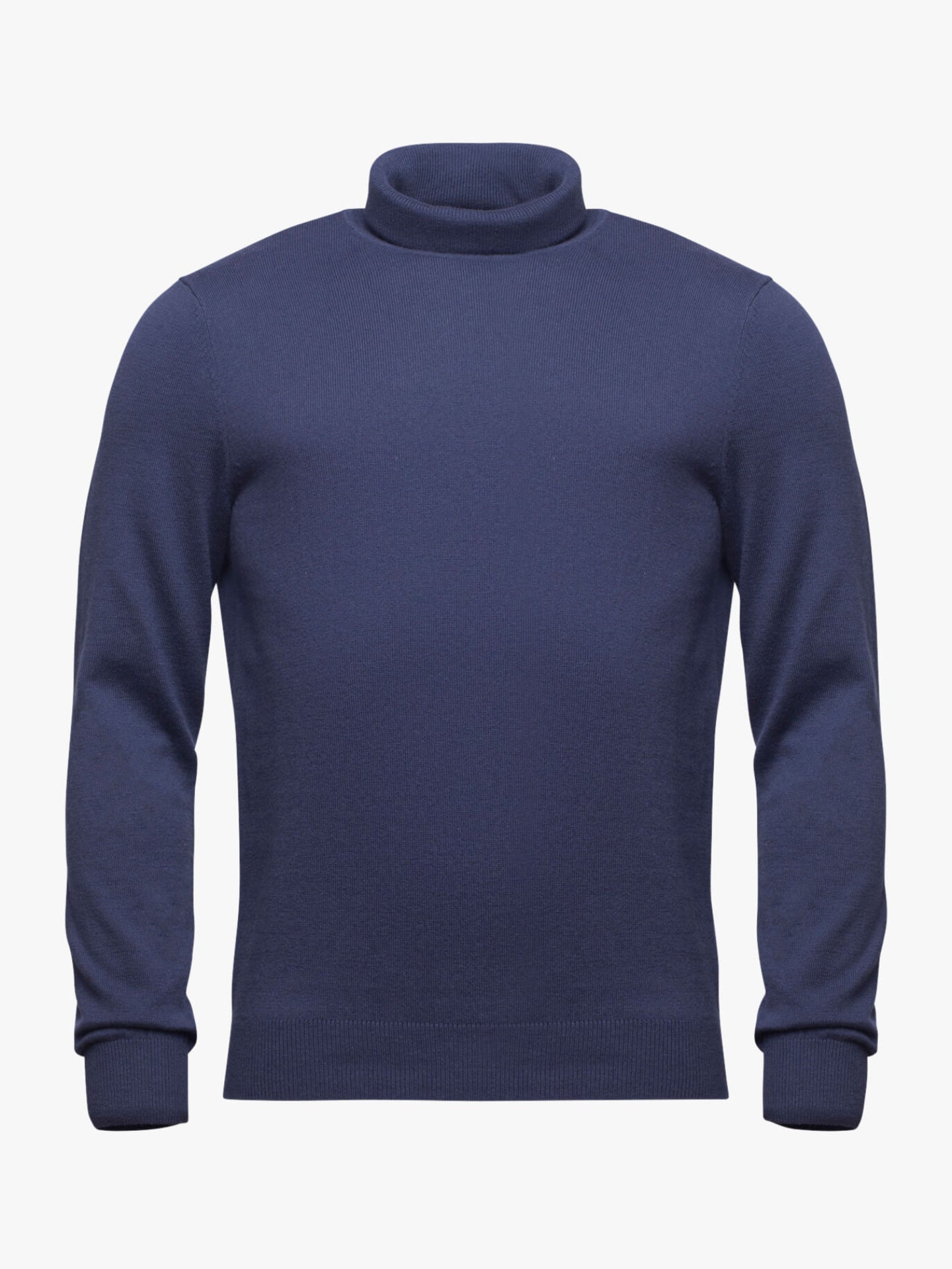 Suéter de cuello alto de algodón y lana merino de color azul medio