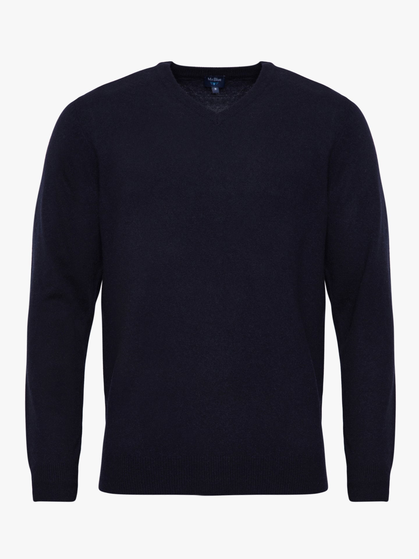 Suéter de cuello en V de lana azul de corte regular para hombre.