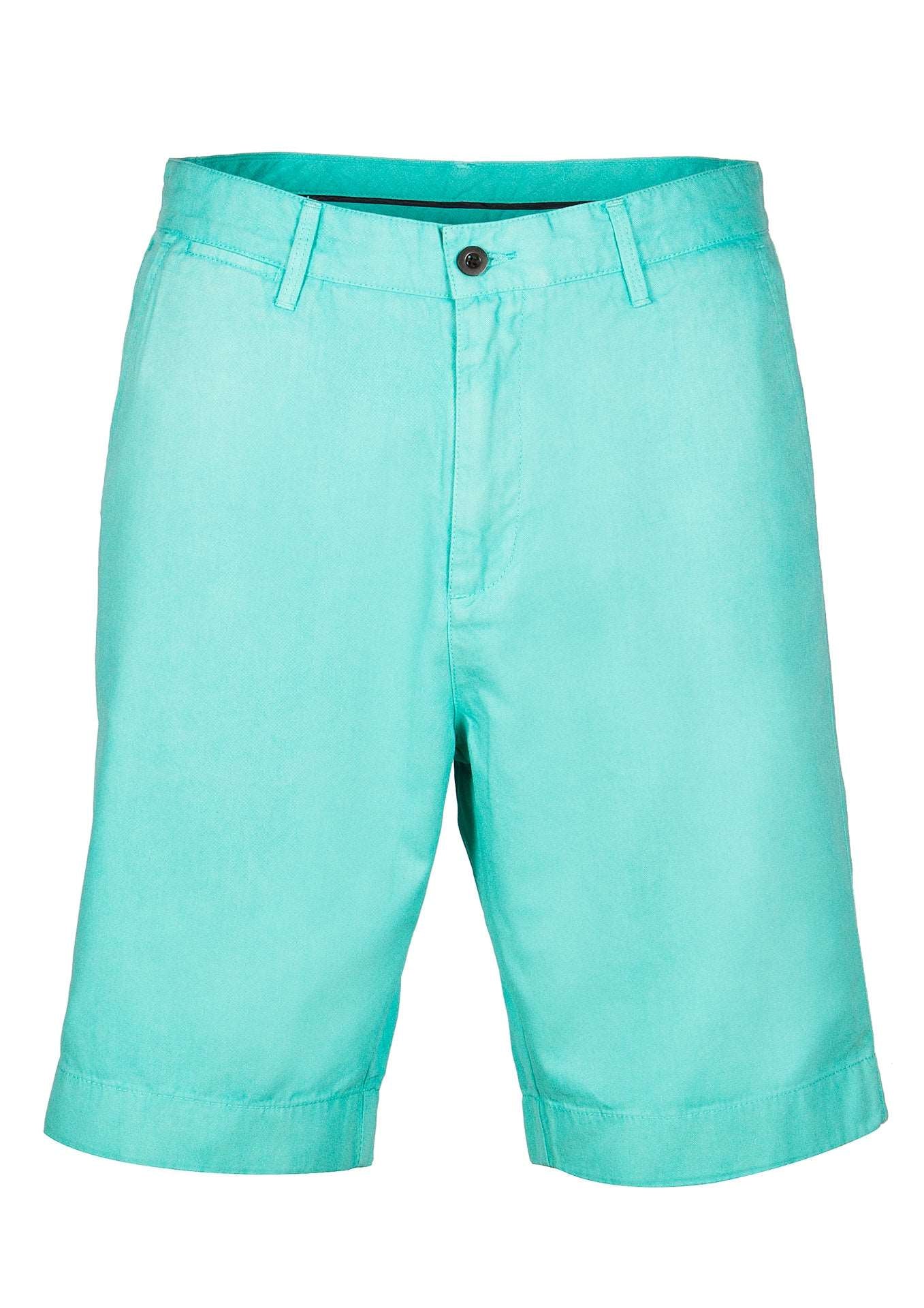 Bermudas Homem 100% Algodão Canvas verde menta com detalhe cós em azul marinho e cinza claro Ideais para dias mais quentes ou para fim-de-semana descontraído
