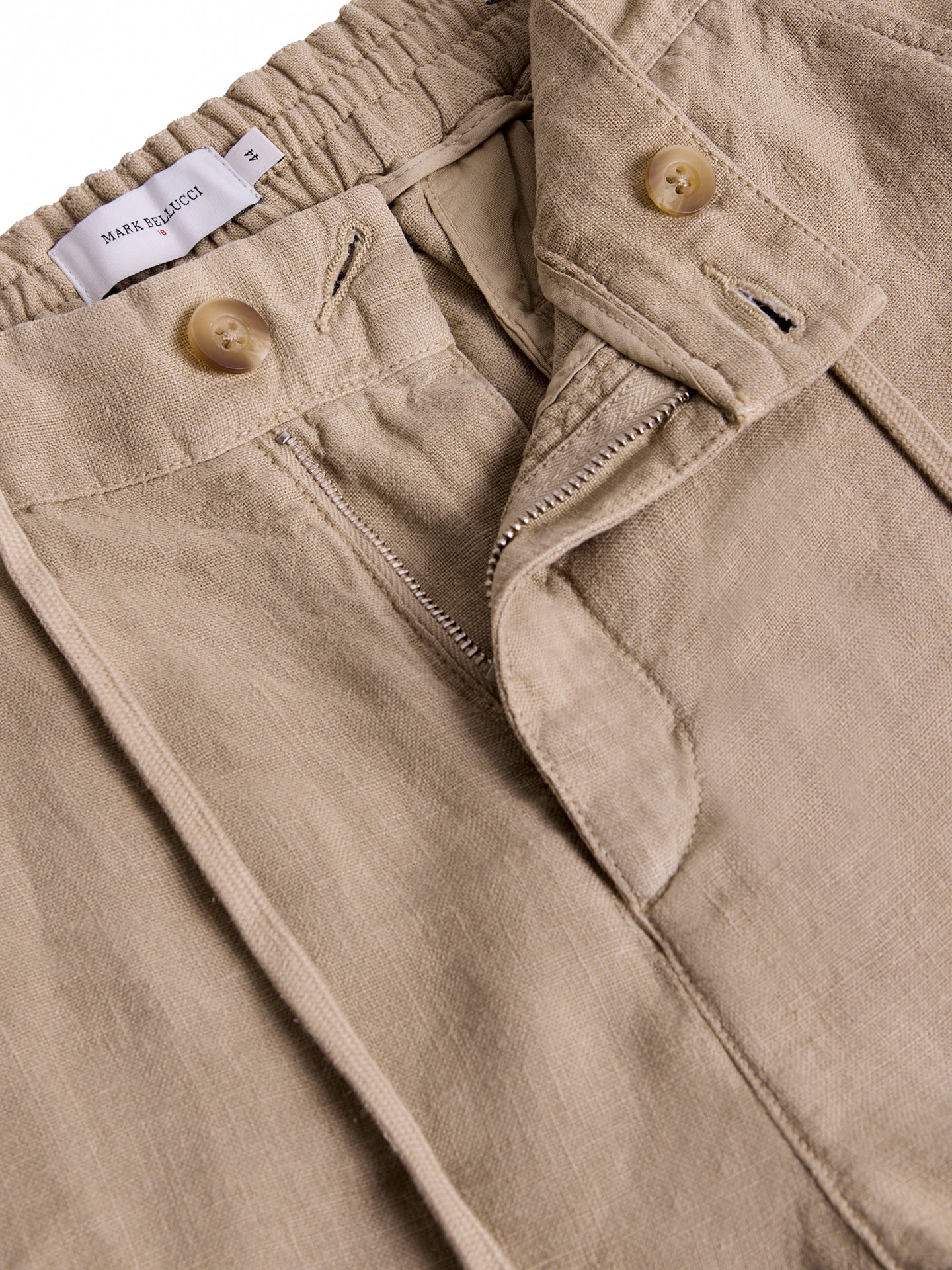 Bermuda Linho Linho Beges Classic Fit Lisos