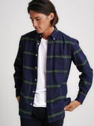 Camisa Regular Fit Flanela Verde Algodão Quadrados