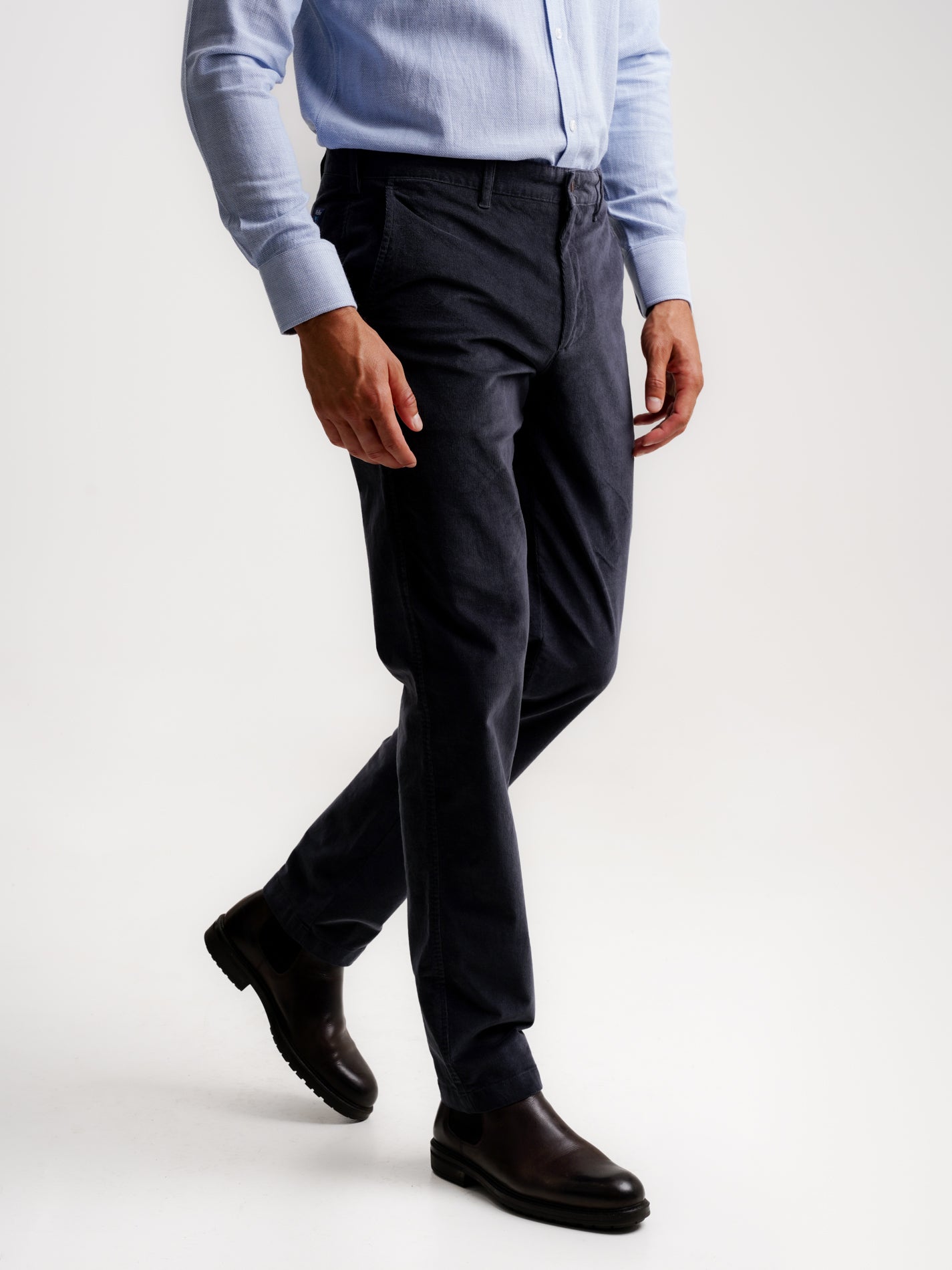 Calças Bombazine Regular Fit Azuis De Algodão Lisas