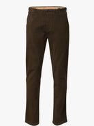 Calças Bombazine, 100% algodão. Carcela com fecho de correr oculto, 2 bolsos laterais, 2 de ilhós abotoado na parte posterior e presilhas para o cinto. Quente e muito confortável, são a escolha certa para os dias de Inverno.