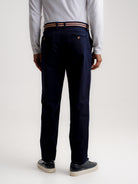 Calças Chinos Regular Fit Dobby Azuis De Algodão Lisas