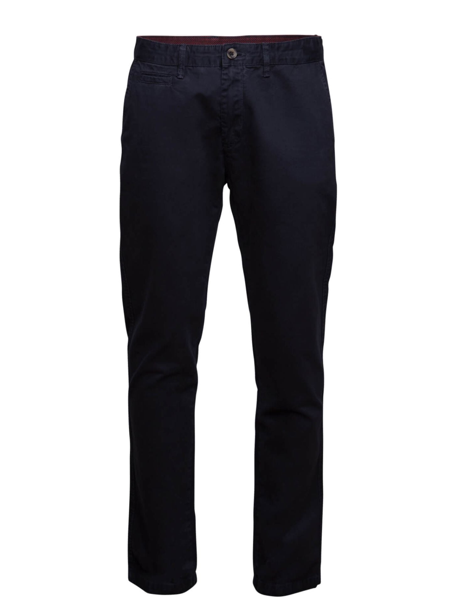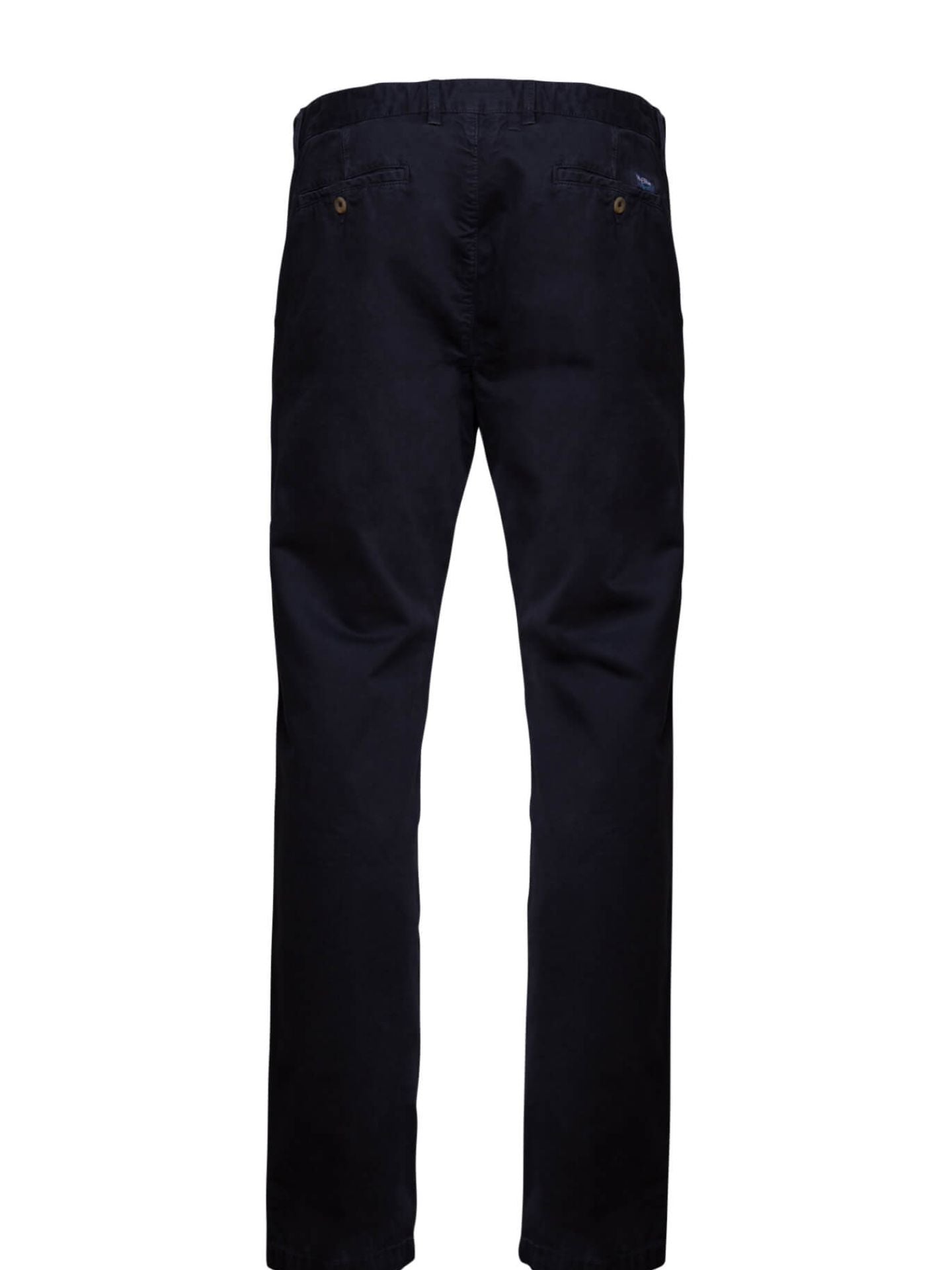 Calças Chino com com estrutura. Carcela com fecho de correr oculto, 2 bolsos laterais, 2 bolsos de ilhós abotoado na parte posterior e presilhas para o cinto. Muito confortável e versátil. É a escolha ideal para um dia de trabalho ou para o fim de semana