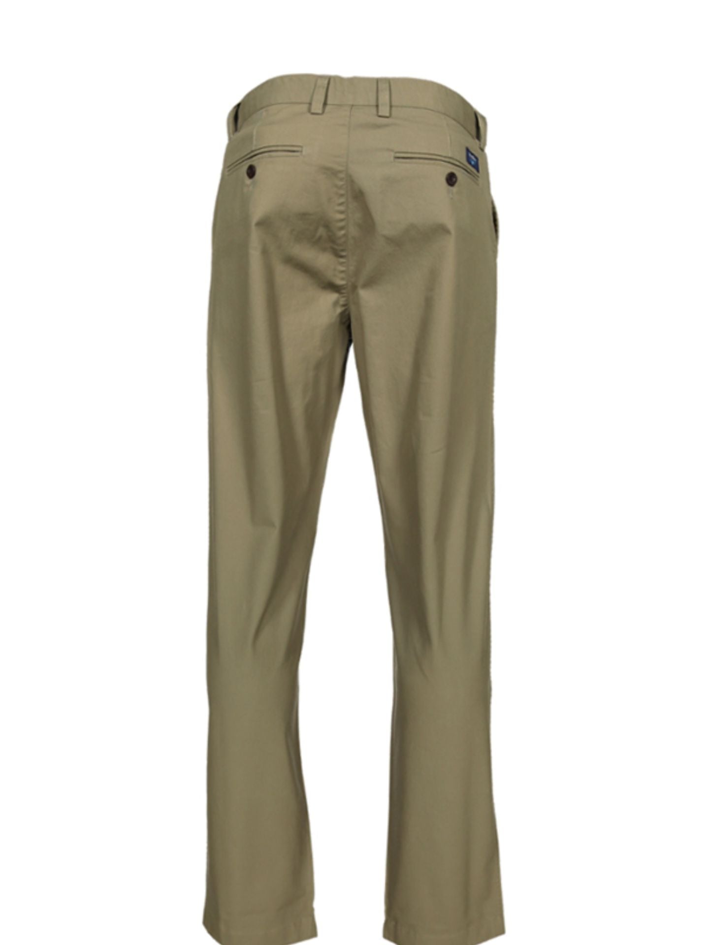Calças Chino Twill lisas. Carcela com fecho de correr oculto, 2 bolsos laterais, 2 bolsos de ilhós abotoado na parte posterior e presilhas para o cinto. Muito confortável e versátil. É a escolha ideal para um dia de trabalho ou para o fim de semana.