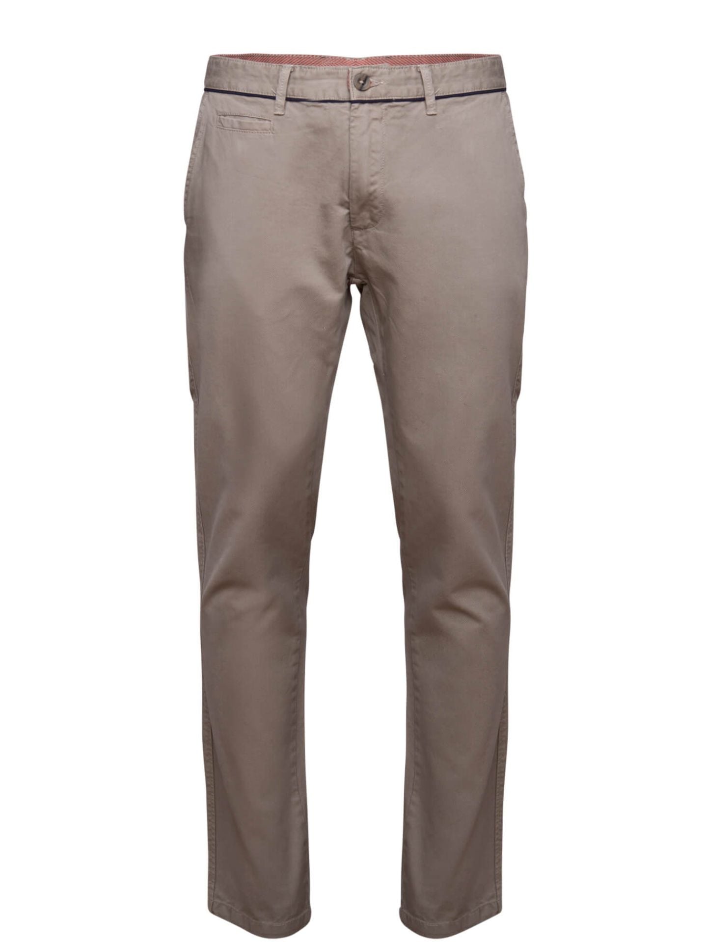 Calças Chino com estrutura Slim Fit lisas. Carcela com fecho de correr oculto, 2 bolsos laterais, 1 bolso porta-moedas, 2 bolsos de ilhós abotoado na parte posterior e presilhas para o cinto. Muito confortável e versátil. É a escolha ideal para um dia de