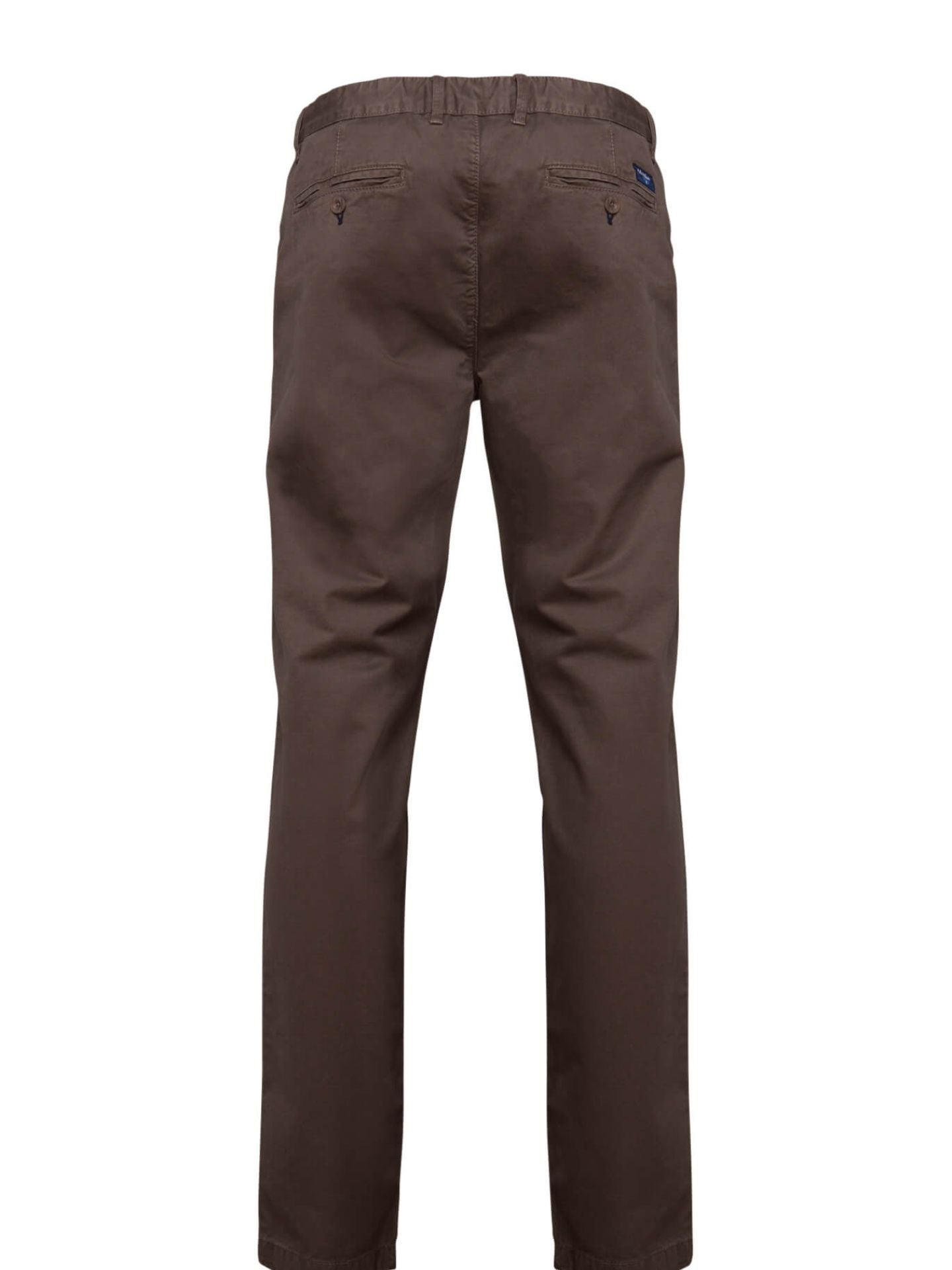 Calças Chino com estrutura lisas. Carcela com fecho de correr oculto, 2 bolsos laterais, 2 bolsos de ilhós abotoado na parte posterior e presilhas para o cinto. Muito confortável e versátil. É a escolha ideal para um dia de trabalho ou para o fim de sema