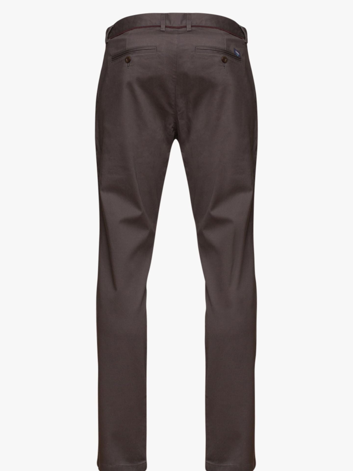 Calças Chino com estrutura Slim Fit lisas. Carcela com fecho de correr oculto, 2 bolsos laterais, 1 bolso porta-moedas, 2 bolsos de ilhós abotoado na parte posterior e presilhas para o cinto. Muito confortável e versátil. É a escolha ideal para um dia de