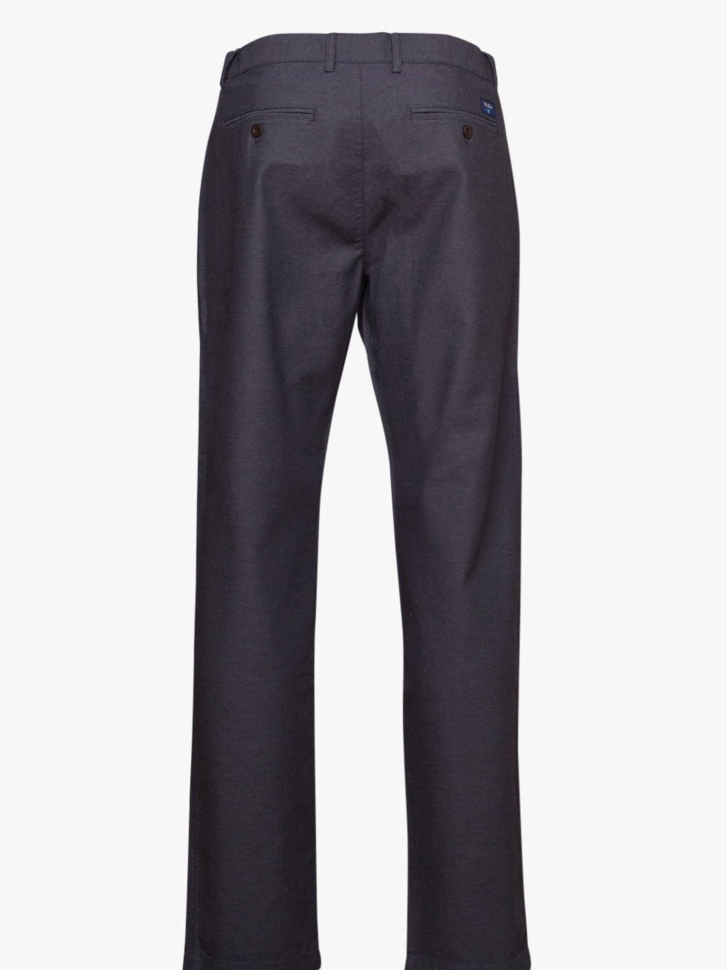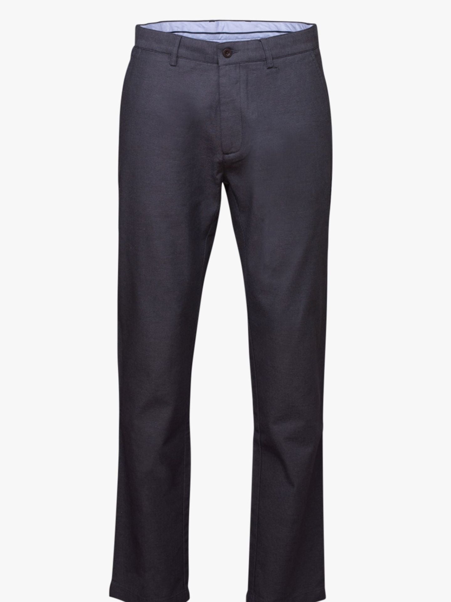 Calças Chino com com estrutura pintas. Carcela com fecho de correr oculto, 2 bolsos laterais, 2 bolsos de ilhós abotoado na parte posterior e presilhas para o cinto. Muito confortável e versátil. É a escolha ideal para um dia de trabalho ou para o fim de