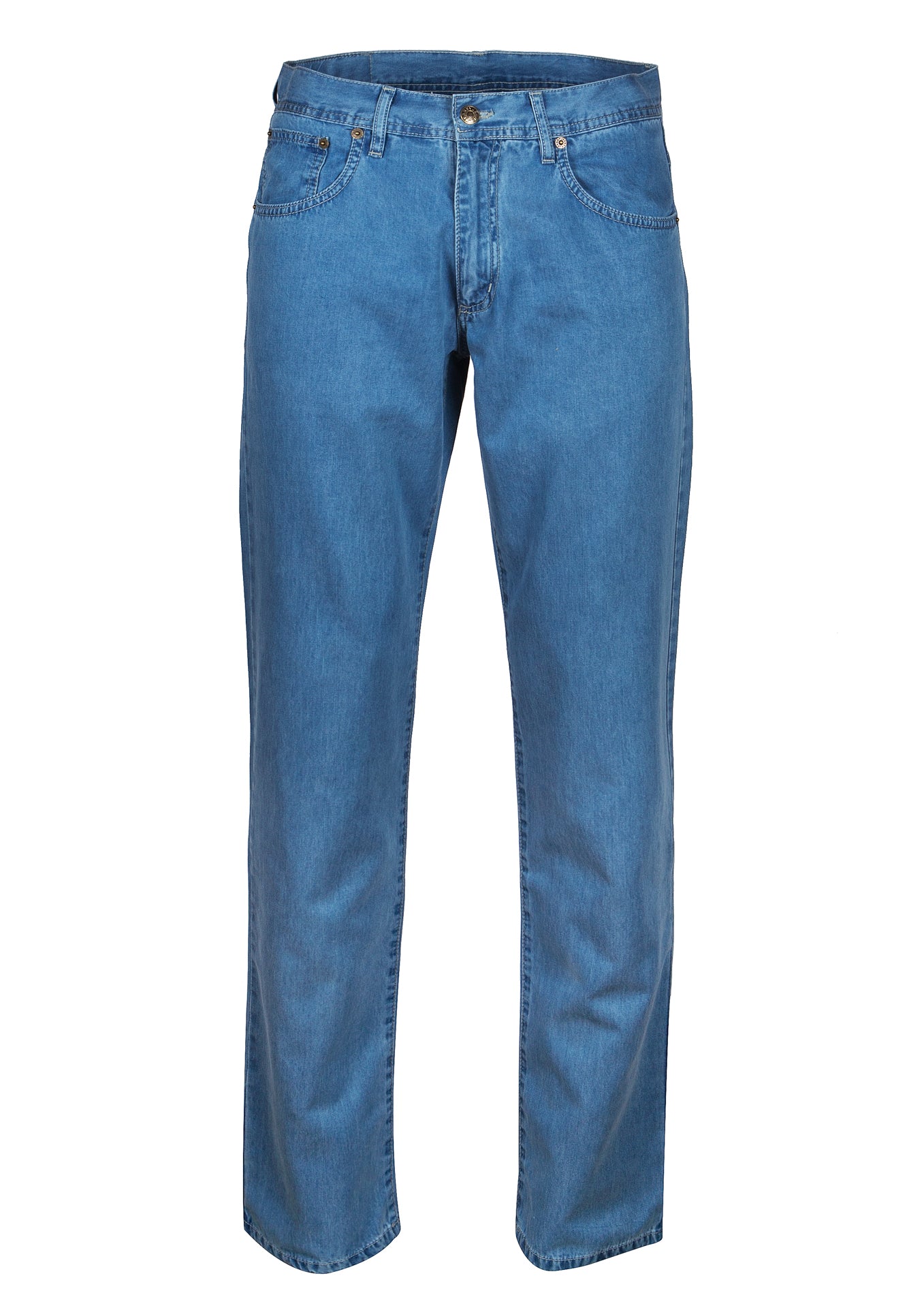 Calças de ganga Homem em algodão e tencel cintura subida azul claro. Corte Tailored Fit. Muito confortáveis, são a escolha certa para os dias mais quentes.