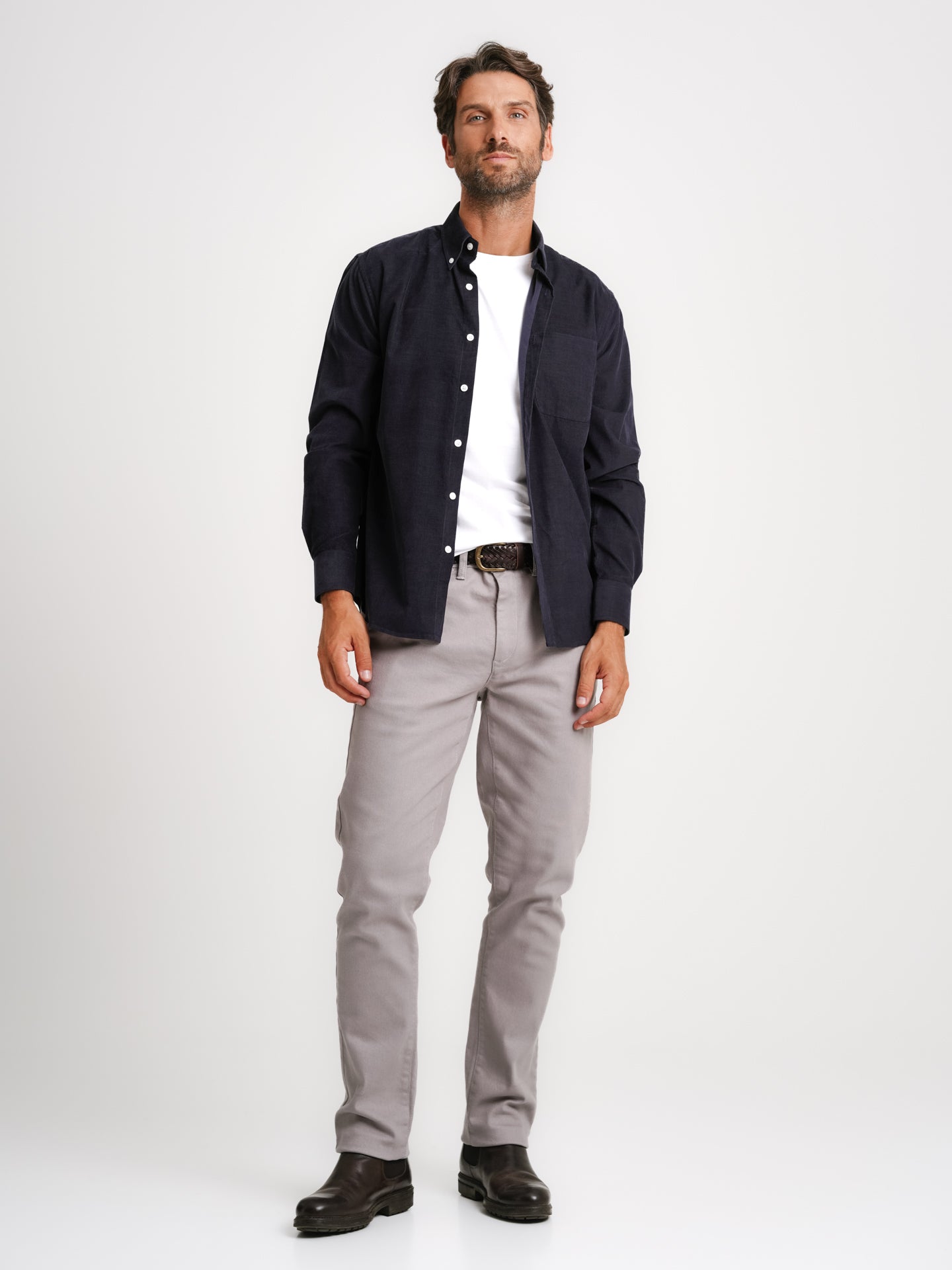 Camisa Regular Fit Bombazine Azul Algodão Liso Com bolso