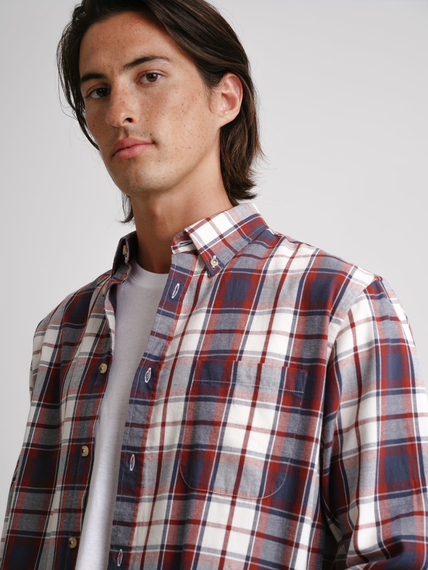 Camisa Regular Fit Flanela Azul Algodão Quadrados