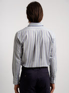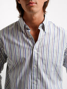 Camisa Regular Fit Oxford Azul Algodão Riscas Com bolso